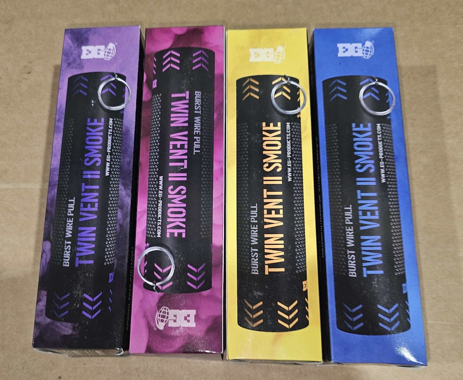 purple, pink, blue, yellow.