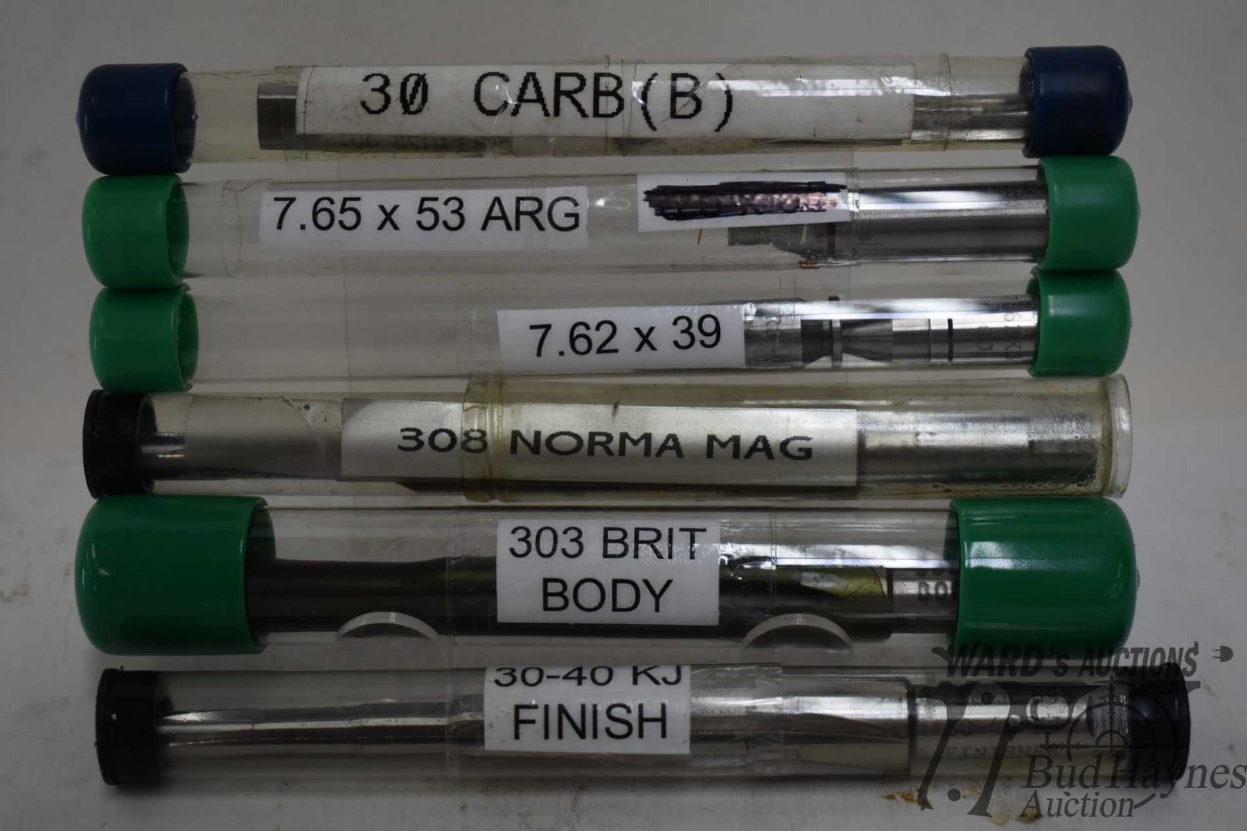 4 reamers including 30 carbin finisher, 30-40 kj finisher, 308 Norma mag finisher and a 303 brit body, plus 7.62x39 go-nogo spotters and 7.65x53 ARG nogo gauge