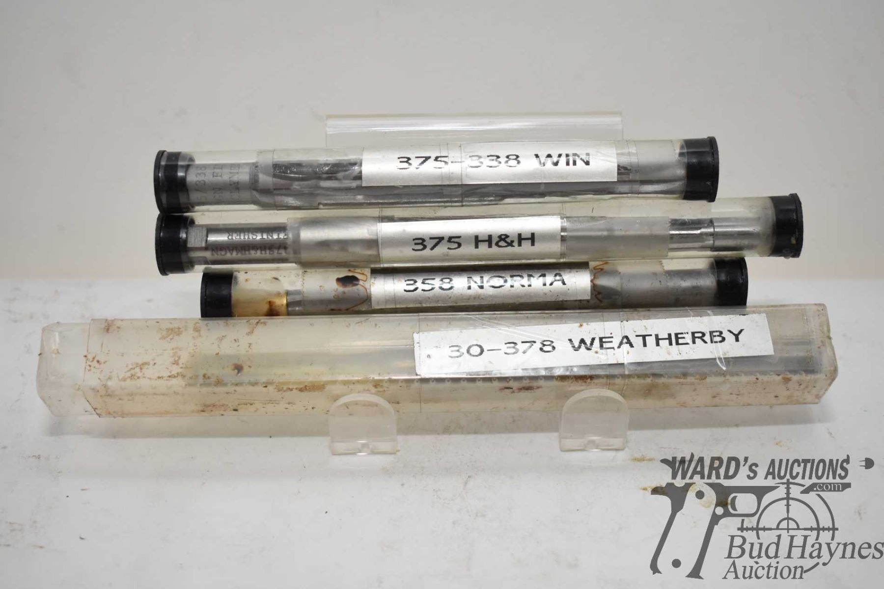 4 reamers including 358 Norma finisher, 375-338 win finisher, 375 H&H finisher, and a 30-378 weather