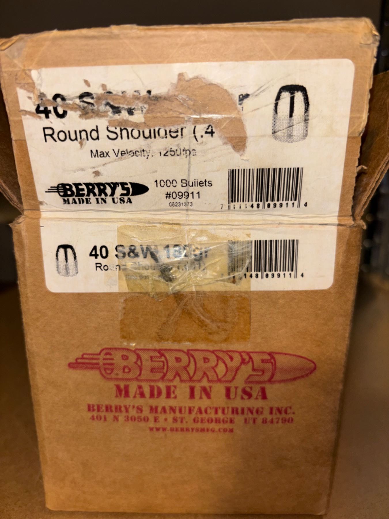 40 S&W 180gr Berry's Round Shoulder Projectiles