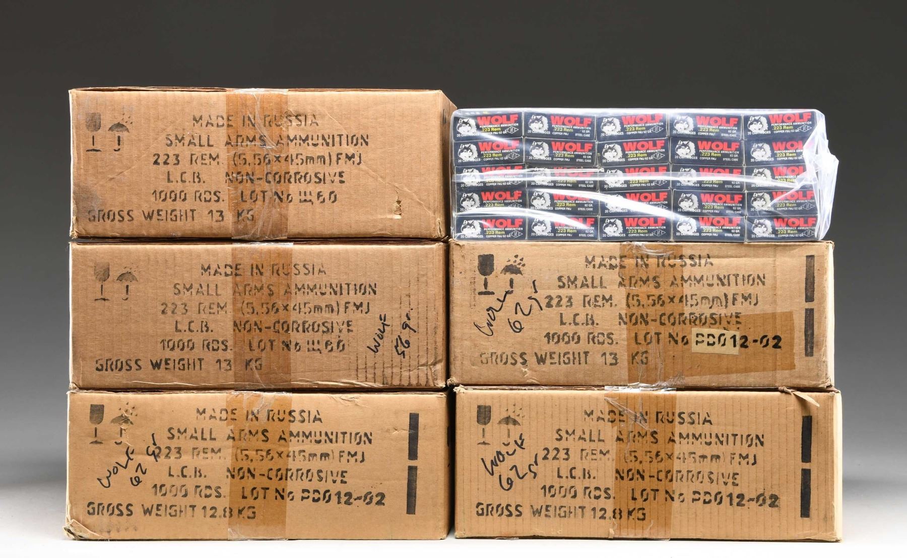 5,000 ROUNDS OF RUSSIAN WOLF 223 REM AMMO.