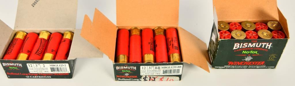 50 Bismuth Magnum 12 Gauge Shotshells, Most are 3" Shells, Some are 3 1/2" BB Shot Size.