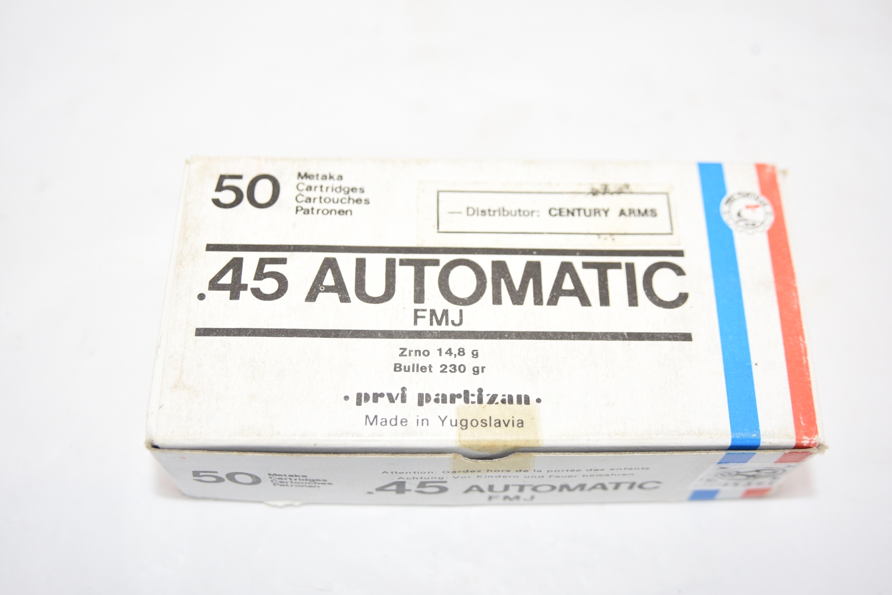 50 Rounds Prvi Partizan .45 Automatic FMJ Ammunition