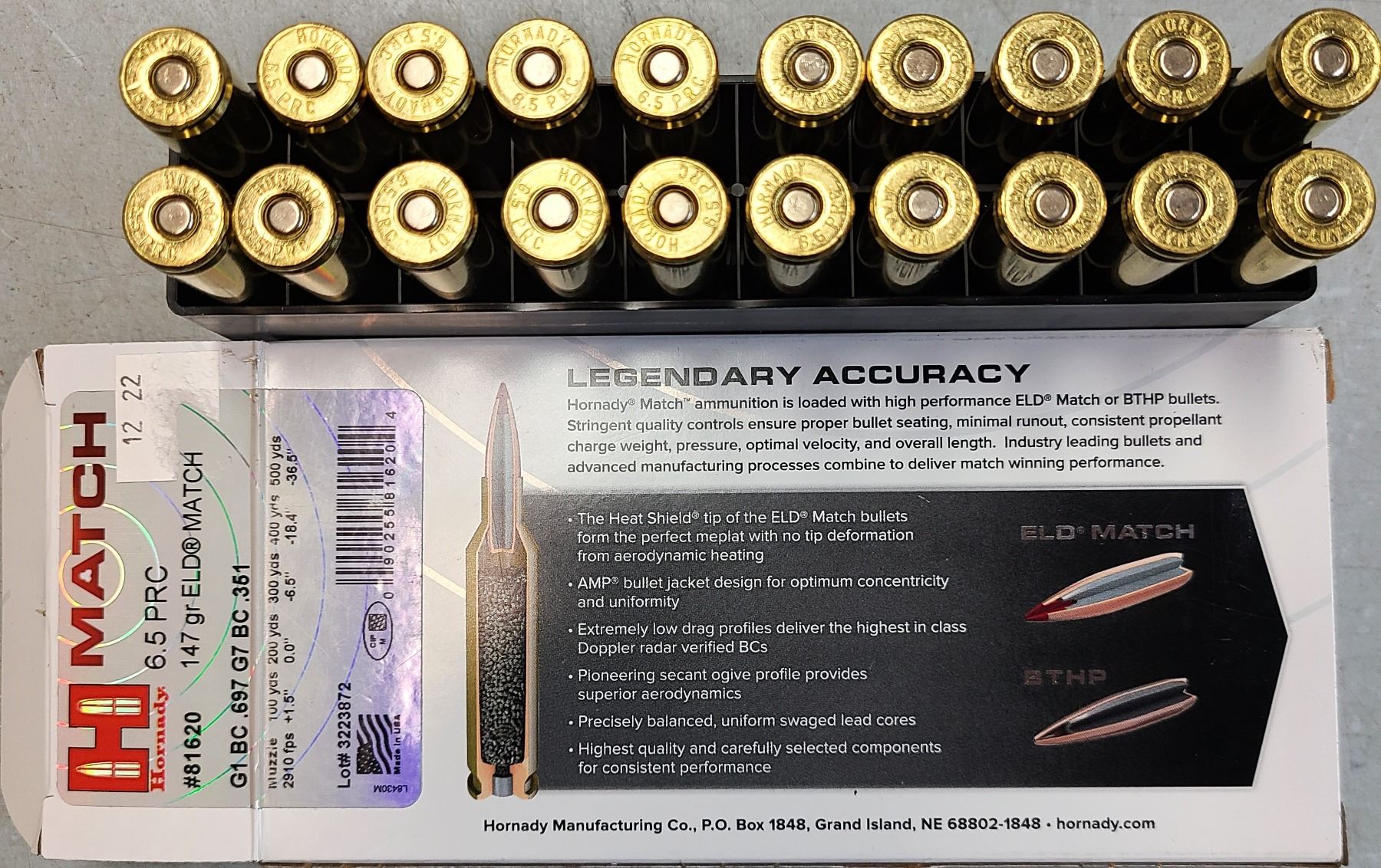 6.5 PRC Hornady Match Ammo 147 gr ELD Match - 20 rds