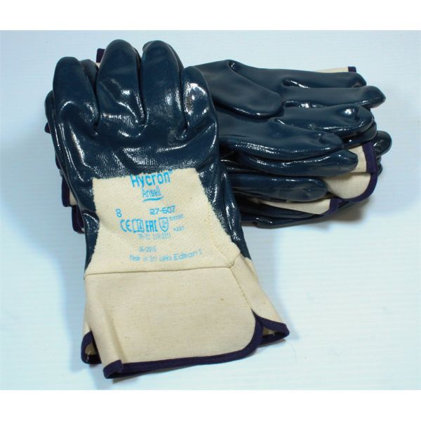 6 PAIR HYCRON 27-607 NITRILE COATED GLOVES W/ COTTON SHELL