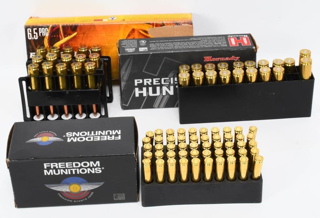 Ladies and gentlemen, welcome to the auction! Today, we have a unique offering: a total of 67 rounds of ammunition, featuring a mix of 6.5 PRC and .30 Carbine rounds, along with empty brass casings. This collection includes: 50 rounds of Freedom Munitions 110 Grain Round Nose .30 Carbine Ammo 17 rounds of 6.5 PRC Ammo 17 empty brass casings for reloading With its versatility and variety, this ammunition assortment caters to different shooting needs. Whether you're a hunter or a sports shooter