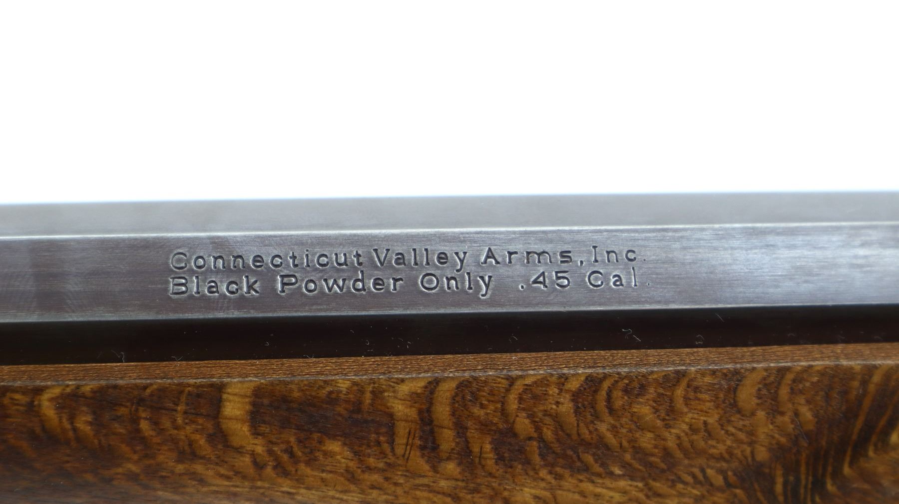 7/10, CVA, MODEL: KENTUCKY, CALIBER: 45 CAL, BORE IS VERY GOOD, SHINY. BLADE FRONT SIGHT, U NOTCHED REAR SIGHT, OCTAGON BARREL, COLOUR CASE HARDENED ENGRAVED LOCK AND HAMMER. ONE PIECE SMOOTH WOOD GRIP, BRASS TRIGGER GUARD, NOSECAP, WOOD RAMROD WITH BRASS TIP. METAL FINISH SHOWS SCRATCHES, HANDLING MARKS AND WEAR. GRIPS SHOW SOME MARKS AND SCRATCHES. BARREL LENGTH: 248MM, SERIAL # 0027937, CONDITION: 7/10, ACTION: PERCUSSION PISTOL, CLASS: CANADIAN RESTRICTED