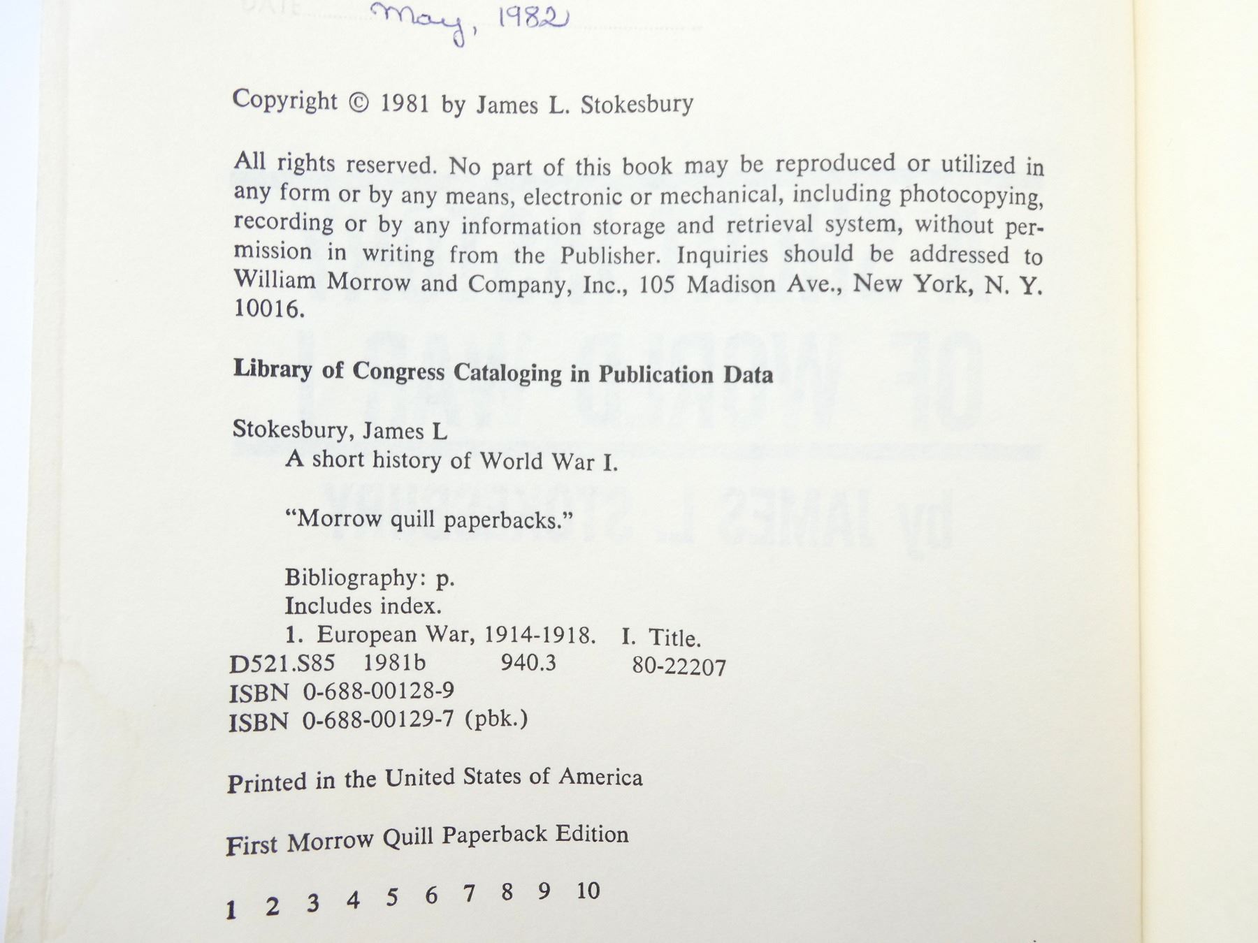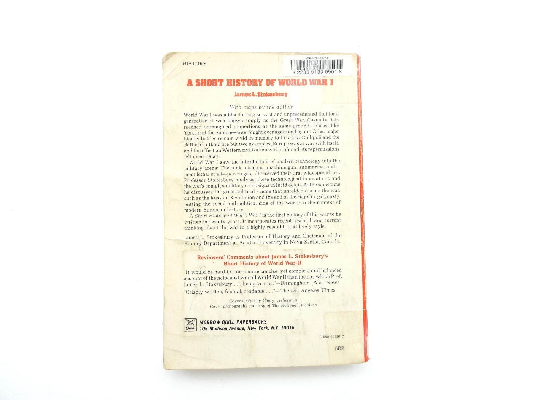 (1) BY JAMES L. STOKESBURY, SOFT COVER, ISBN: 0-688-00129-7. SEE PHOTOS.