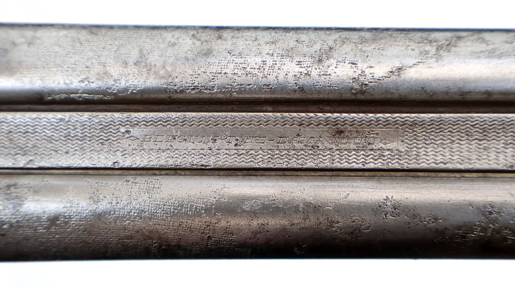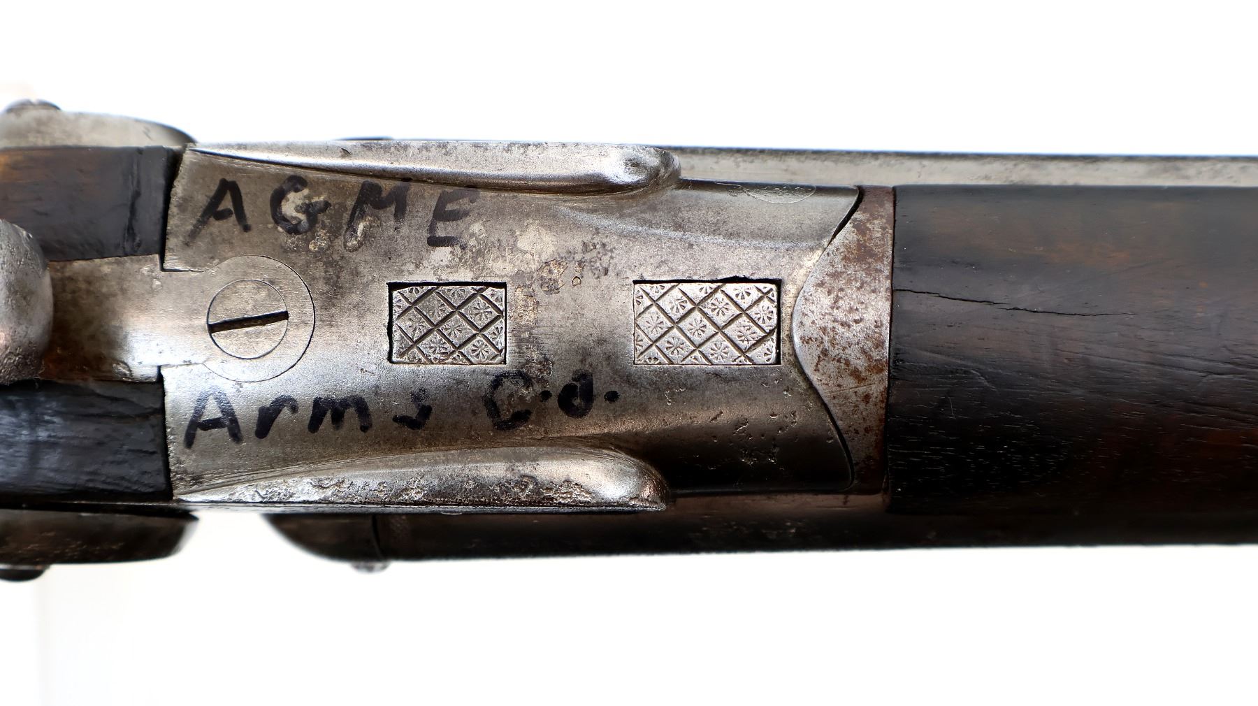 Main Description: Silver bead, grooved rib, barrels are loose on face, action does not open requires repair. Side locks with checkered spur hammers that function, double triggers. Two piece wood stocks, checkered forearm which is chipped and cracked, checkered pistol grip chipped, cracked behind receiver and locks, checkered steel butt plate, grip cap.