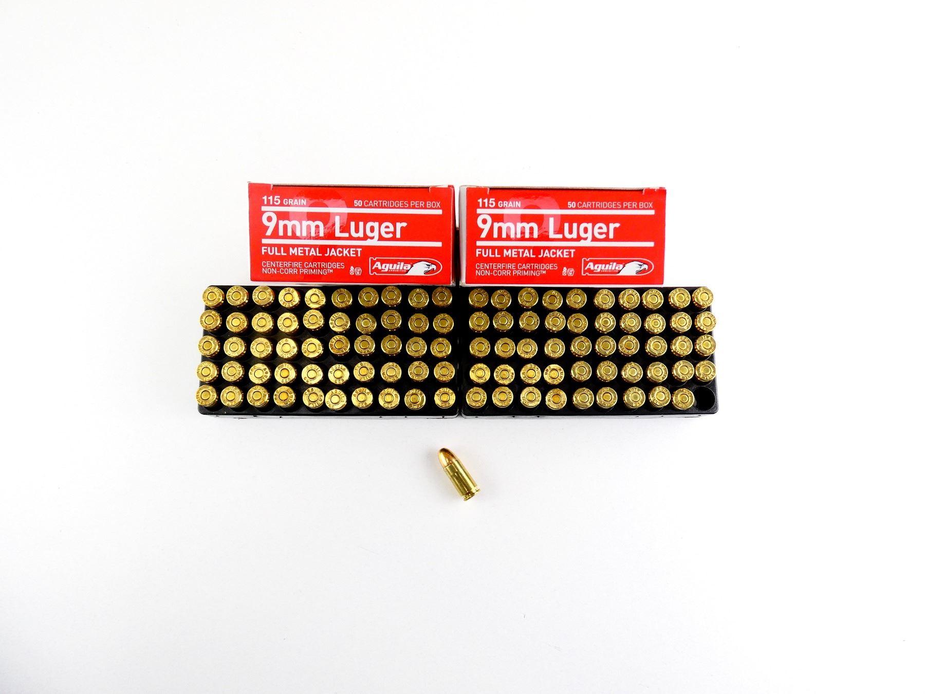 LOT INCLUDES; APPROX. (100) RNDS, 115 GRNS (STATED ON BOXES NOT CONFIRMED), FMJ, NON-CORROSIVE PRIMING.