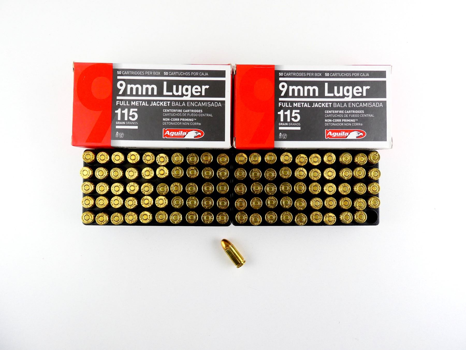 LOT INCLUDES; APPROX. (100) RNDS, 115 GRNS (STATED ON BOXES NOT CONFIRMED), FMJ, NON-CORROSIVE PRIMING.