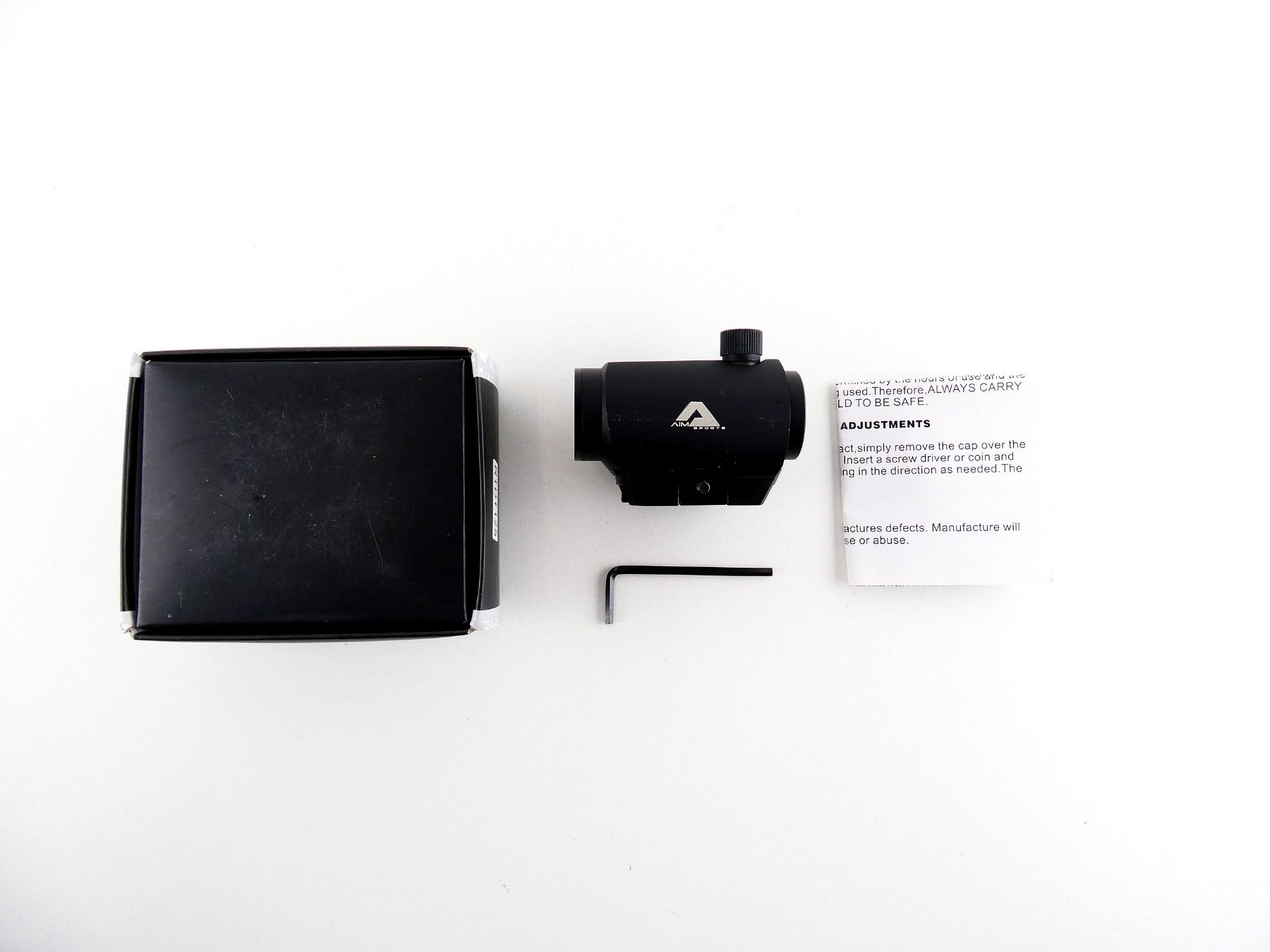 (1) CLEAR OPTICS, WORKING RED / GREEN DOT RETICLE, MULTIPLE BRIGHTNESS SETTINGS, ITEM #: RTDT125, SHOWS WEAR & TEAR / USE MARKS, WITH INSTRUCTIONS IN ORIGINAL PACKAGING. MAY REQUIRE FITTING. SEE PHOTOS.