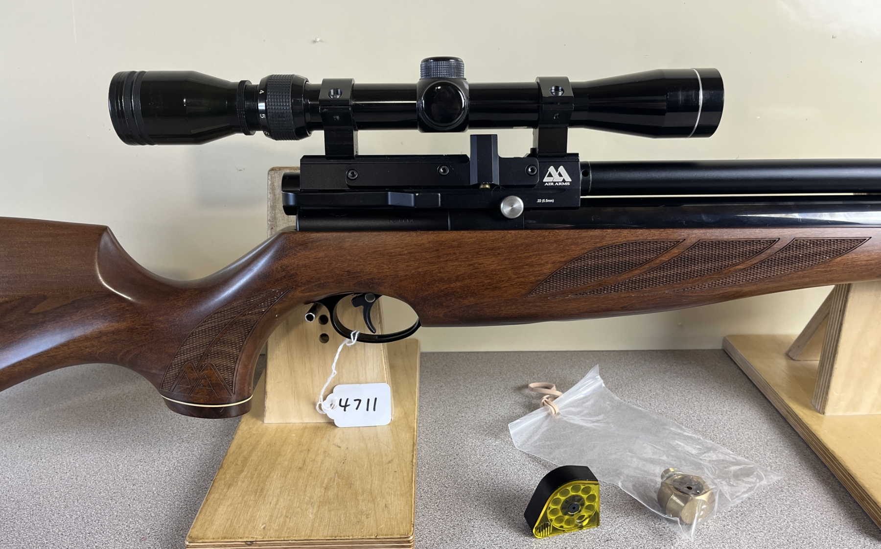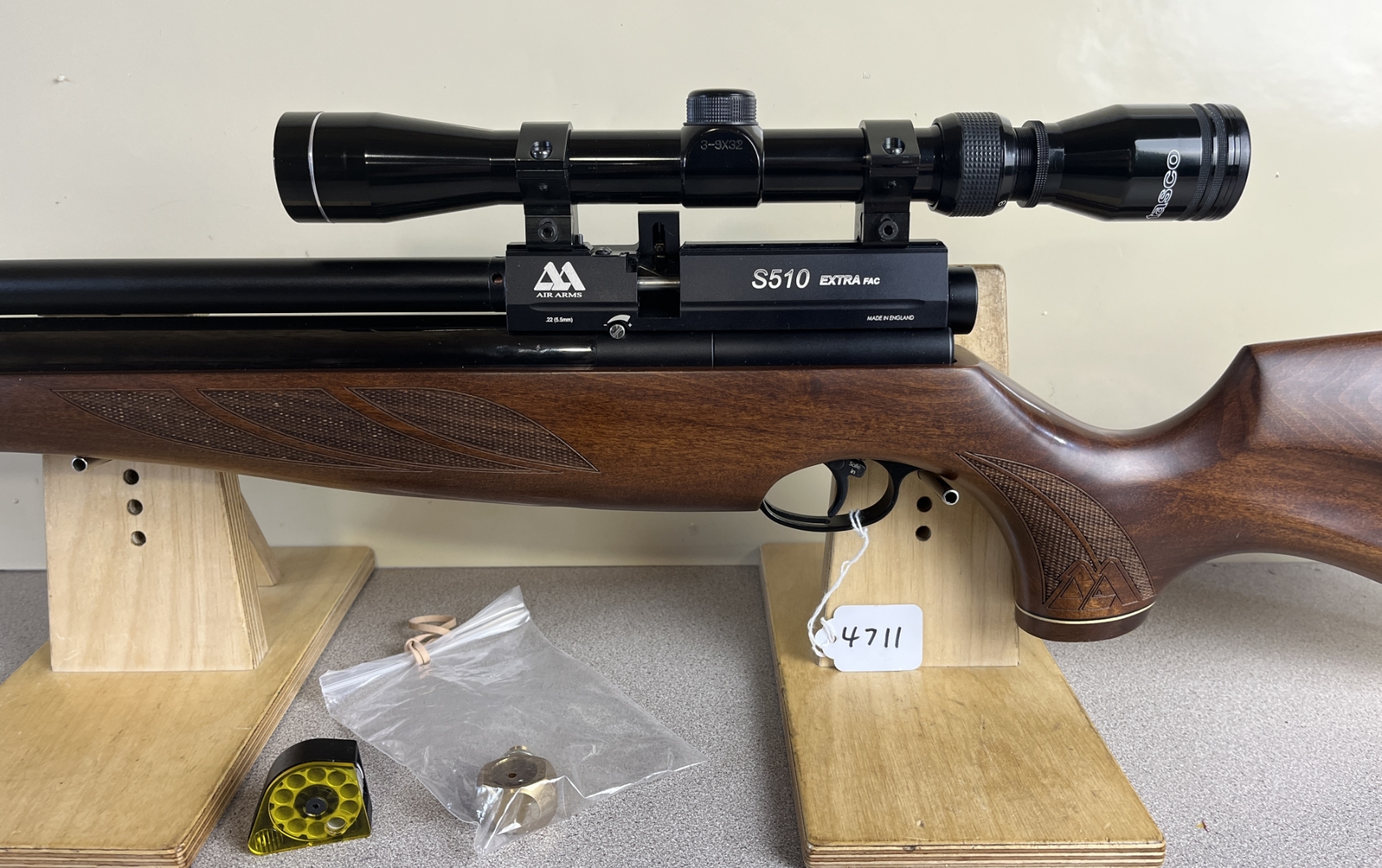 CONDITION: APPEARS G-VG OVERALL. UNTESTED. SPECS: 26IN BBL. INCL 1X MAG. EXTRAS: TASCO 3-9X SCOPE CLEAR WITH CROSSHAIRS, BRASS ADAPTER. S/N: 141118