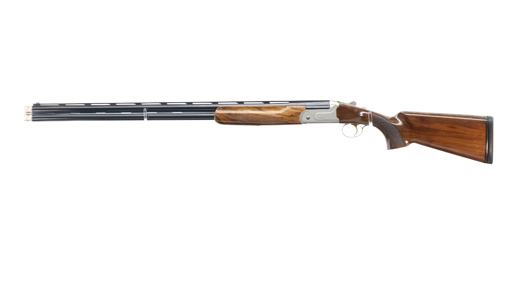 Main Description: Red Fiber optic front and brass mid rib beads, blued vent rib barrels, silver receiver, manual selective safety, ejectors, single gold inertia trigger. Two piece wood stocks, finger grooved checkered forearm and pistol grip with right hand palm swells, adjustable comb, black rubber recoil pad. Accessories include: Spare Cylinder, Mod and Full Chokes with Wrench and Case