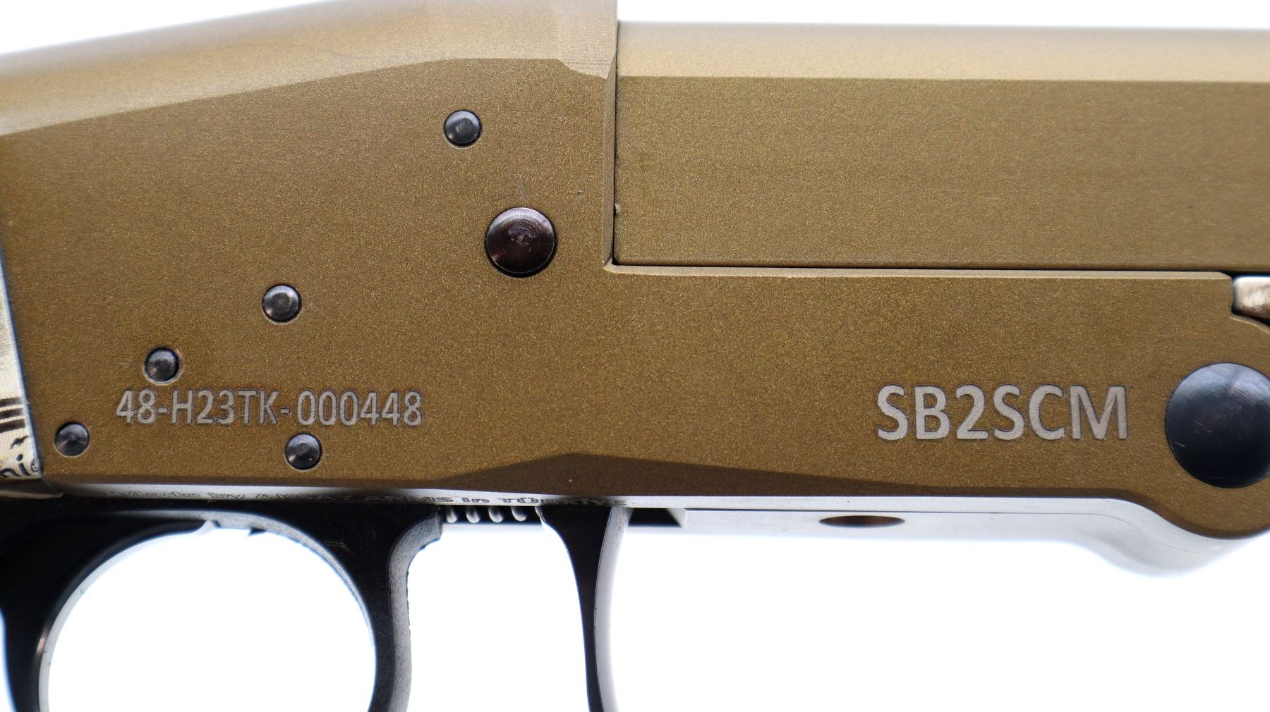 Main Description: Brass bead, Burnt bronze Cerakote finish, vent rib, missing extractor assembly requires repair, smooth opening lever in front of trigger guard. Two piece Next G1 Micro Print synthetic stocks, checkered forearm and pistol grip, ambi cheek rest, checkered black polymer butt plate, sling swivels
