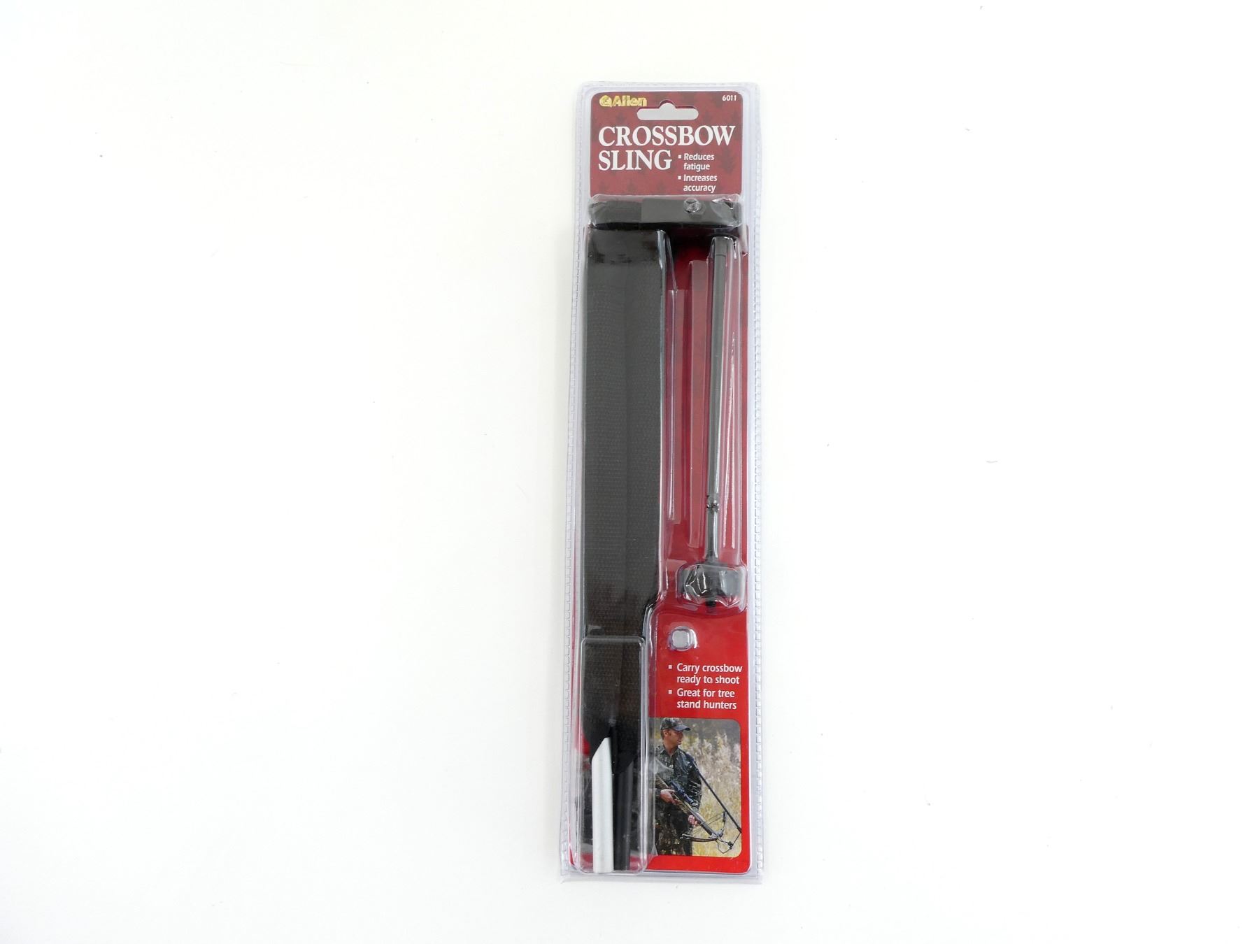 LOT INCLUDES; (1) ALLEN CROSSBOW SLING, REDUCES FATIGUE, INCREASES ACCURAY, CARRY CROSSBOW READY TO SHOOT, GREAT FOR TREE STAND HUNTERS, NEW OLD STOCK, SEE PHOTOS, UNOPENED.