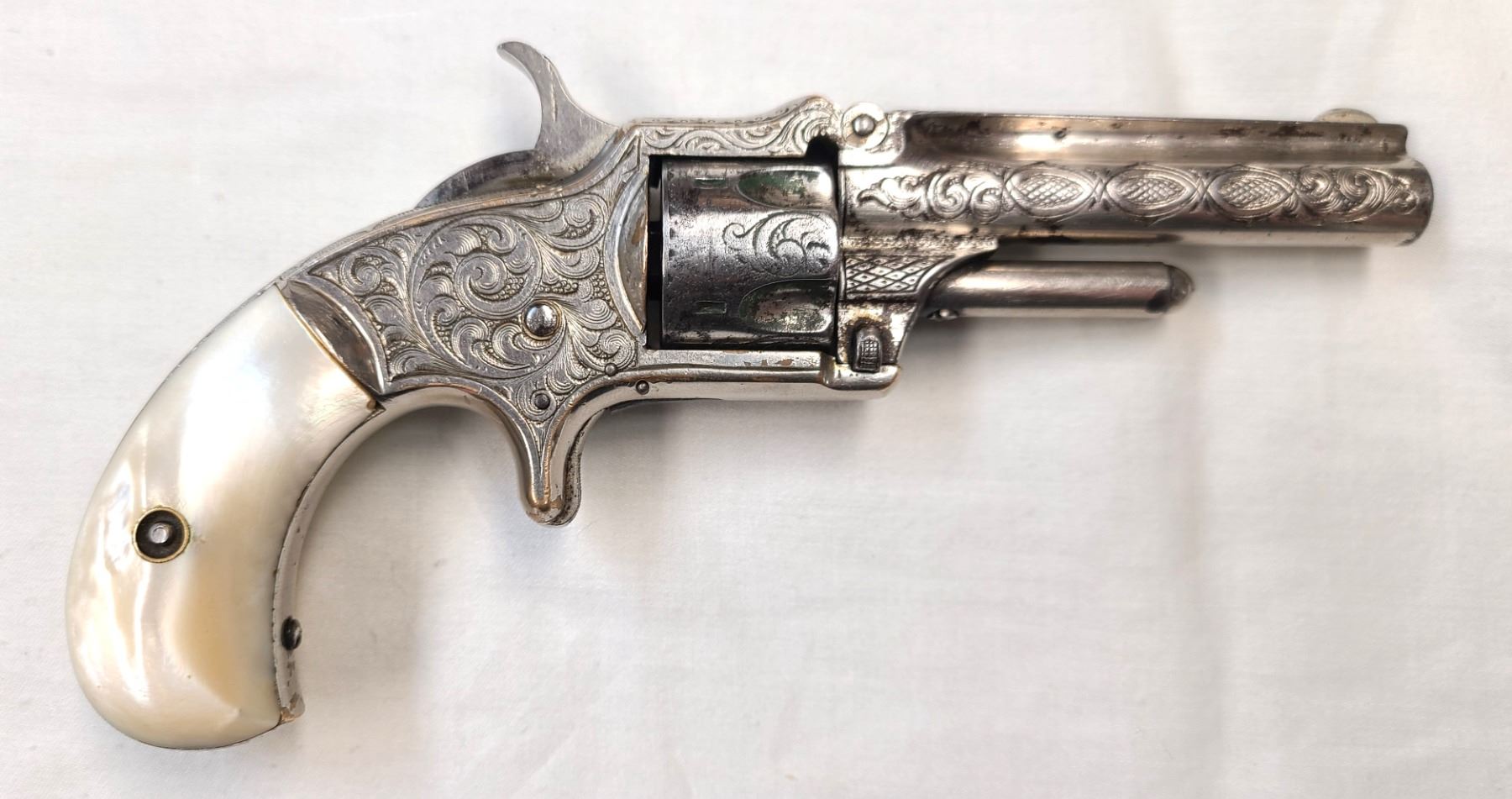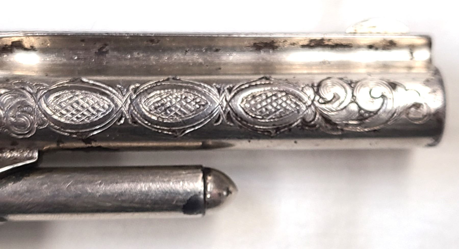 Spur trigger, Tip-up opening with 3 inch barrel, marked J.M. Marlin, New Haven, Ct.