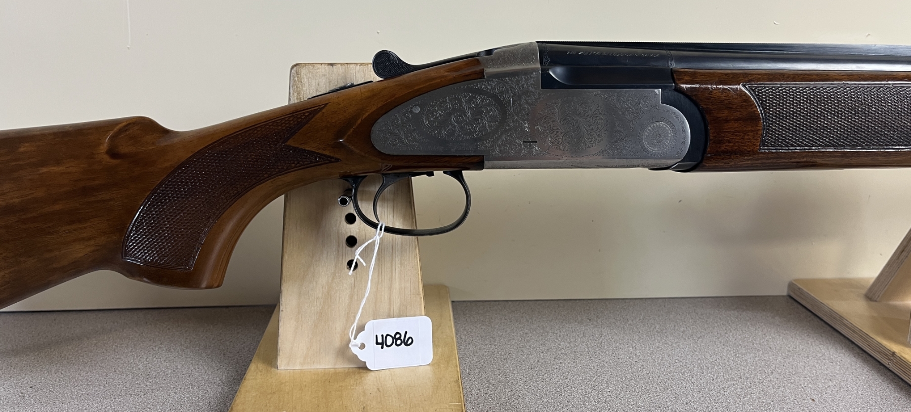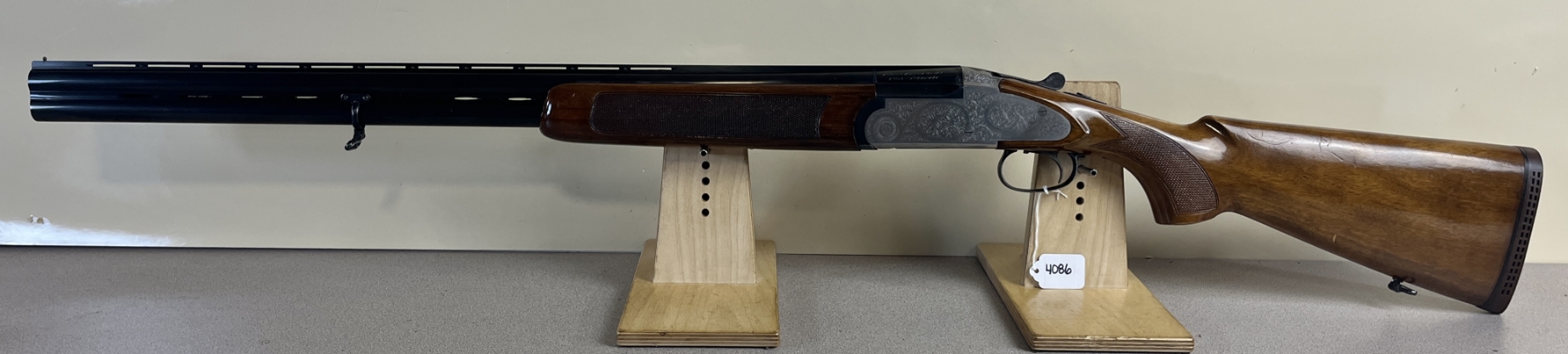 CONDITION: G OVERALL INCL BORES. APPROX 1MM PLAY ON PIN W/ ACTION OPEN. SPECS: 27.5IN VR O/U BBLS. FULL OVER MOD CHOKE. 2 3/4IN CHAMBER. EXTRAS: NONE. S/N: 86429.
