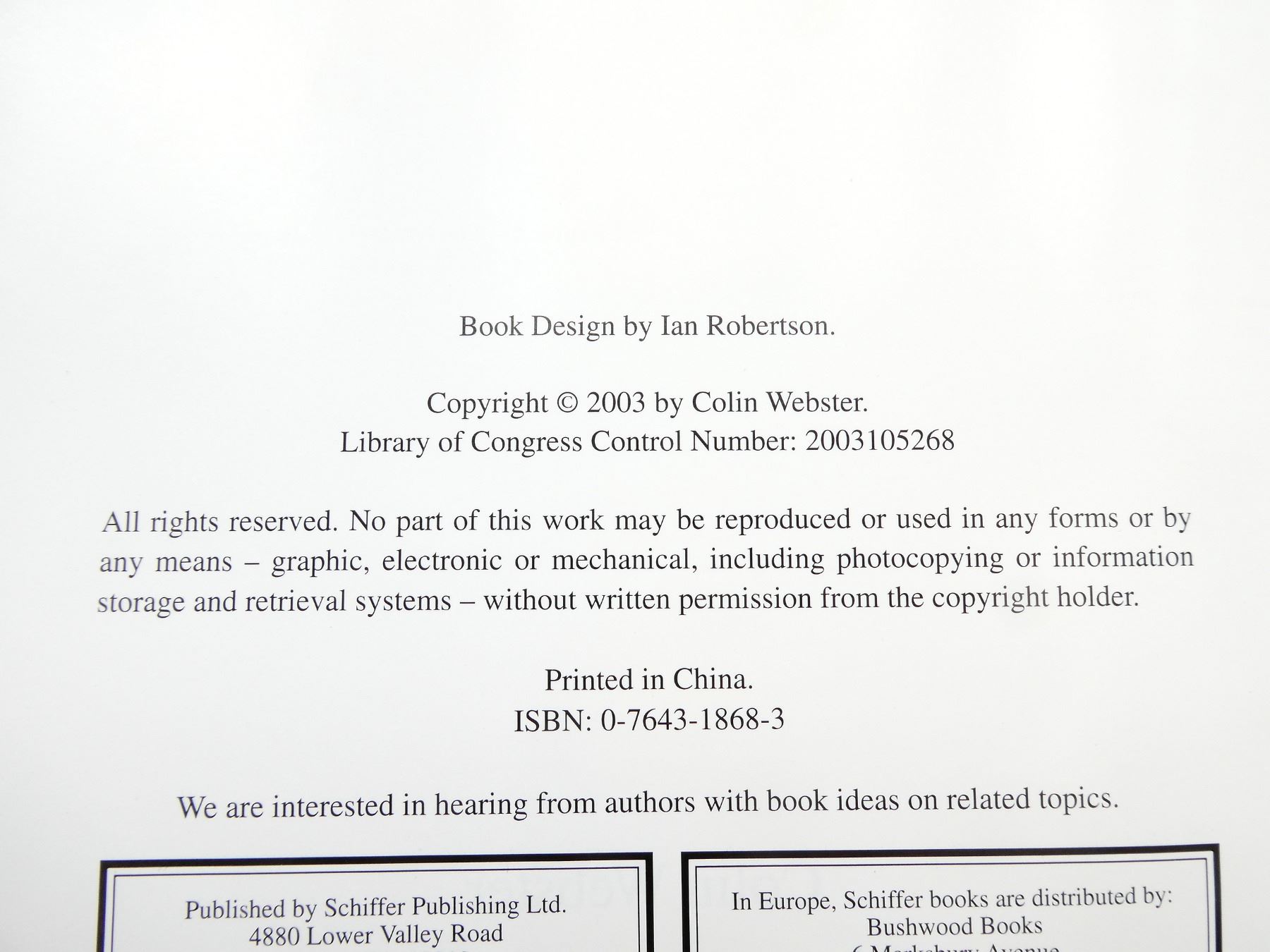 (1) BY COLIN WEBSTER, HARD COVER WITH DUST COVER, ISBN: 0-7643-1868-3. SEE PHOTOS.