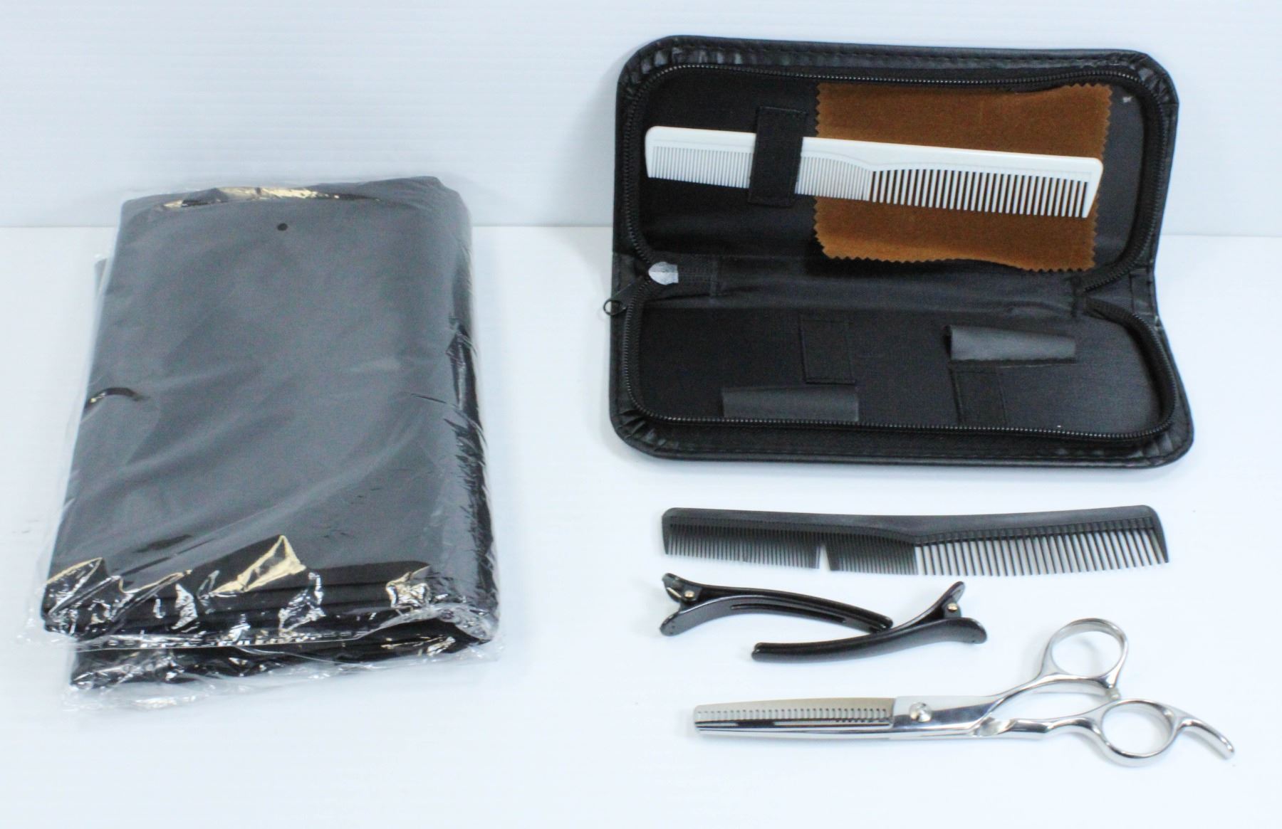 AROAMAS HAIR CUTTING SHEARS KIT INCL. STAINLESS STEEL SCISSORS, CAPE, COMB, CLOTH, CASE AND 2 CLIPS