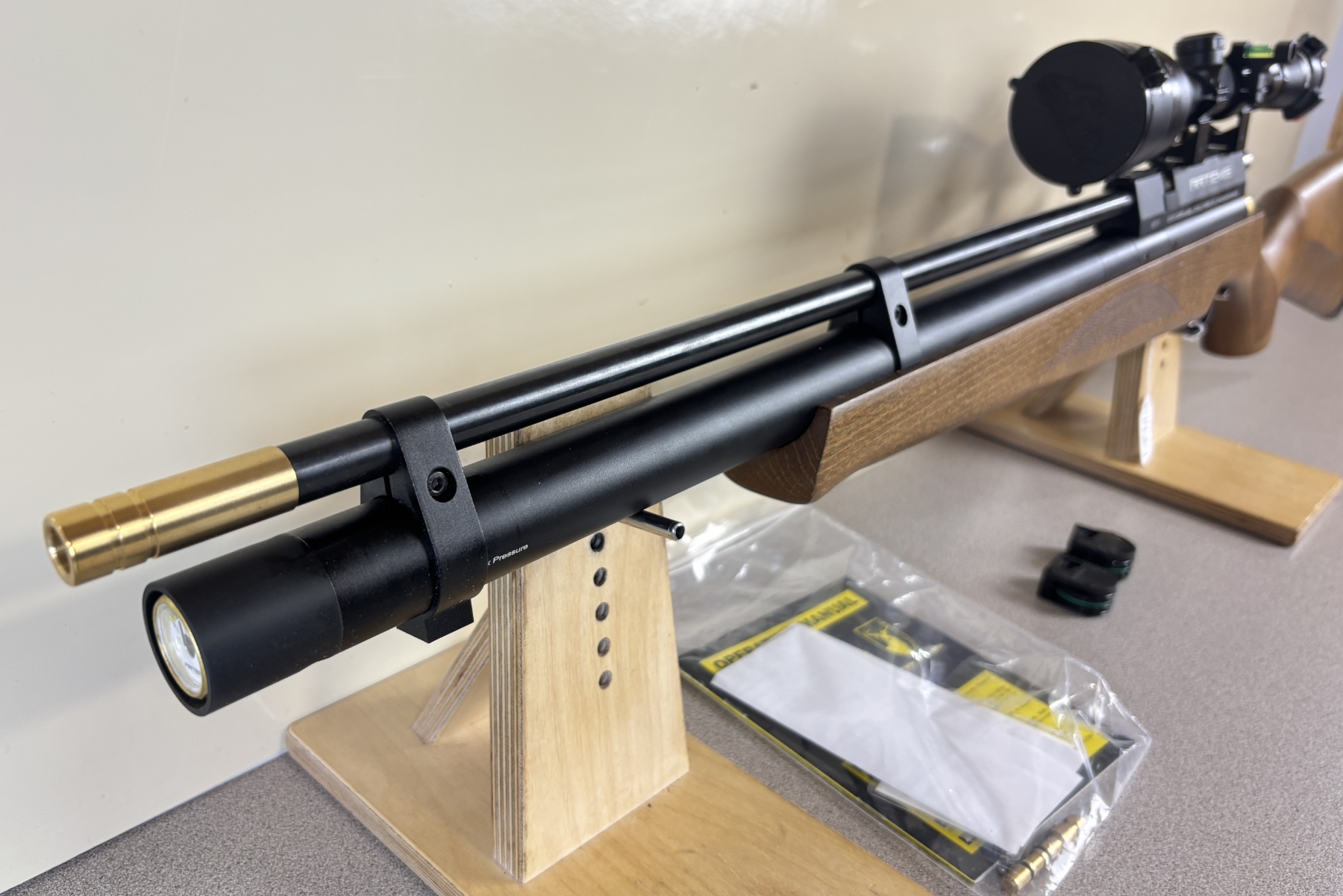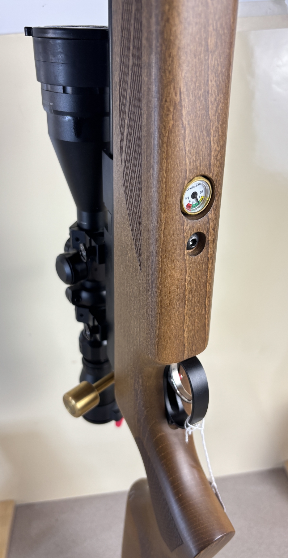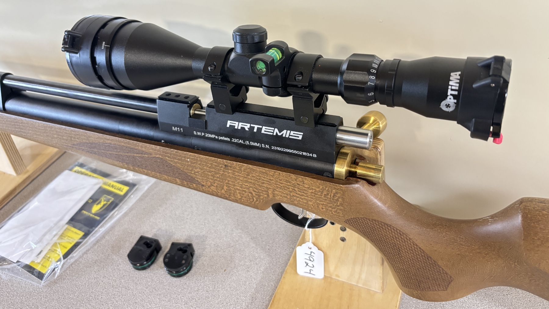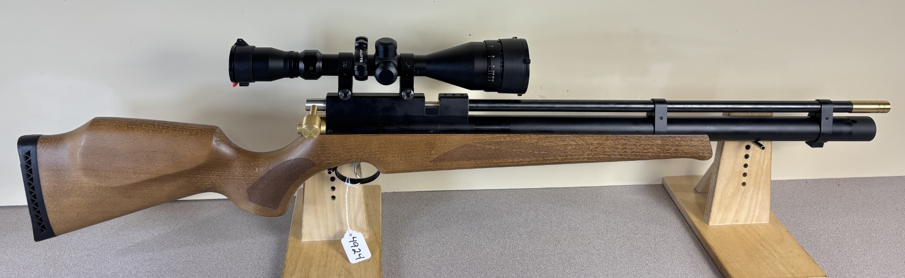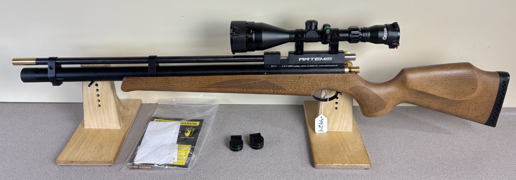 CONDITION: VG OVERALL. SPECS: 250CC AIR CAPACITY. 1100 FPS. EXTRAS: OPTIMA 4-12 SCOPE WITH BUBBLE LEVEL, CLEAR WITH CROSSHAIRS. INCL 2X MAGAZINES. S/N: 2319229955021834B