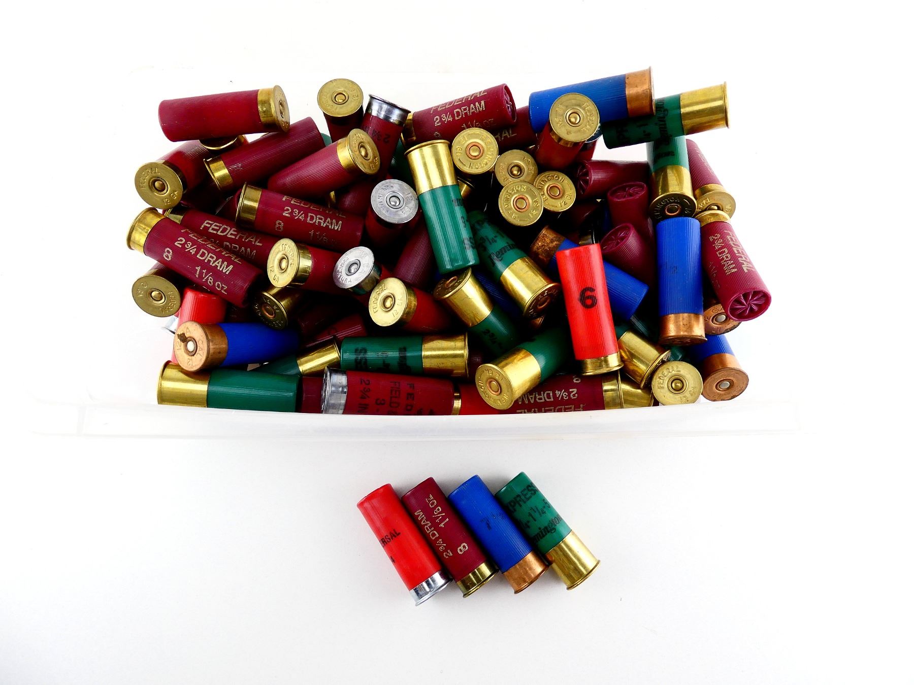 LOT INCLUDES; APPROX. (100) RNDS, VARIOUS MANUFACTURERS INCLUDING; WINCHESTER, FEDERAL, REMINGTON, ASSORTED SHOT SIZES; #4, #5, #7 1/2, #8, ETC.