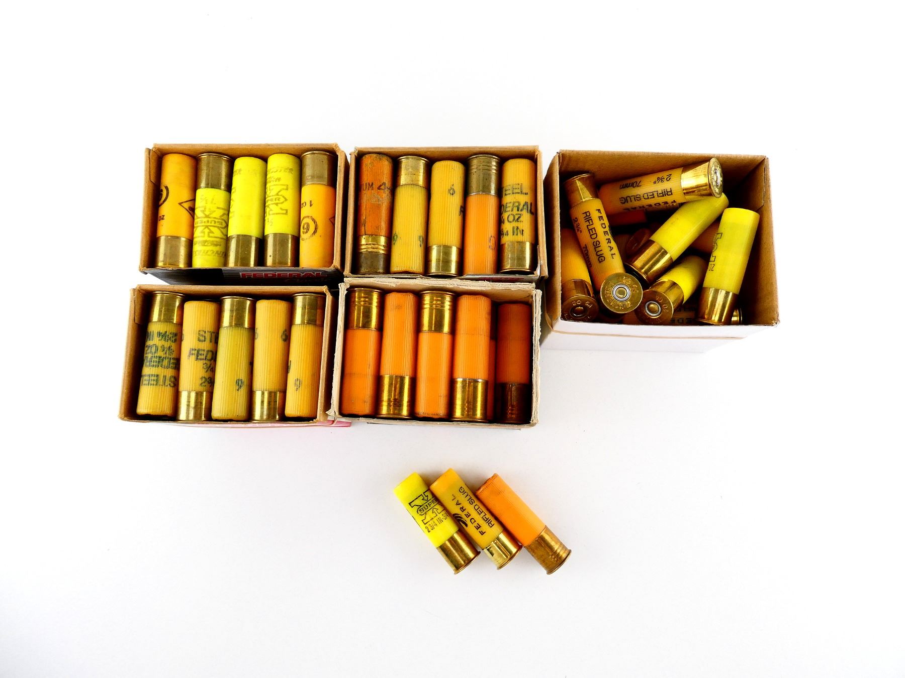 LOT INCLUDES; APPROX. (120) RNDS, VARIOUS MANUFACTURERS; ASSORTED SHOT SIZES INCLUDING; #4, #6, #7 1/2, #RIFLED SLUGS HP, ETC.