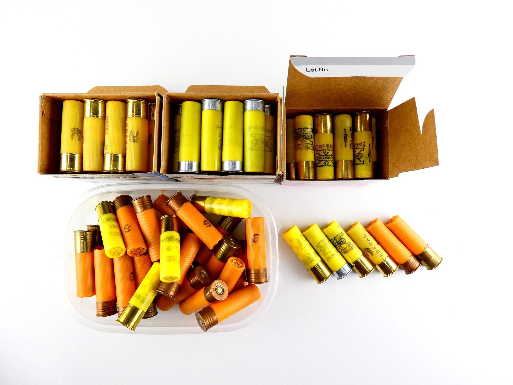 LOT INCLUDES; APPROX. (90) RNDS, VARIOUS MANUFACTURERS INCLUDING; WINCHESTER, IMPERIAL, FEDERAL, REMINGTON, ETC., ASSORTED SHOT SIZES; #5, #6, #3 BUCK, #RIFLED SLUG HP, ETC.