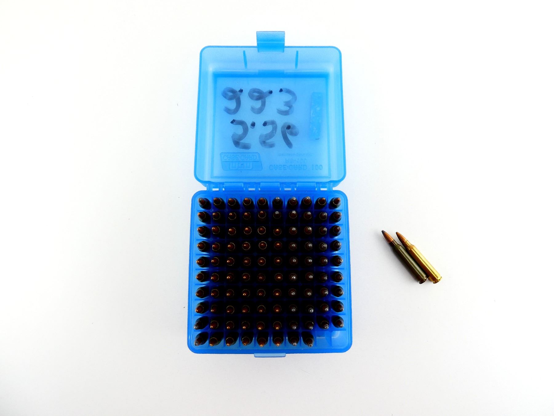 LOT INCLUDES; APPROX. (100) RNDS, FMJ & SP, VARIOUS MANUFACTURERS INCLUDING; FEDERAL, ETC., (1) CASE-GARD 100 PLASTIC AMMO BOX.