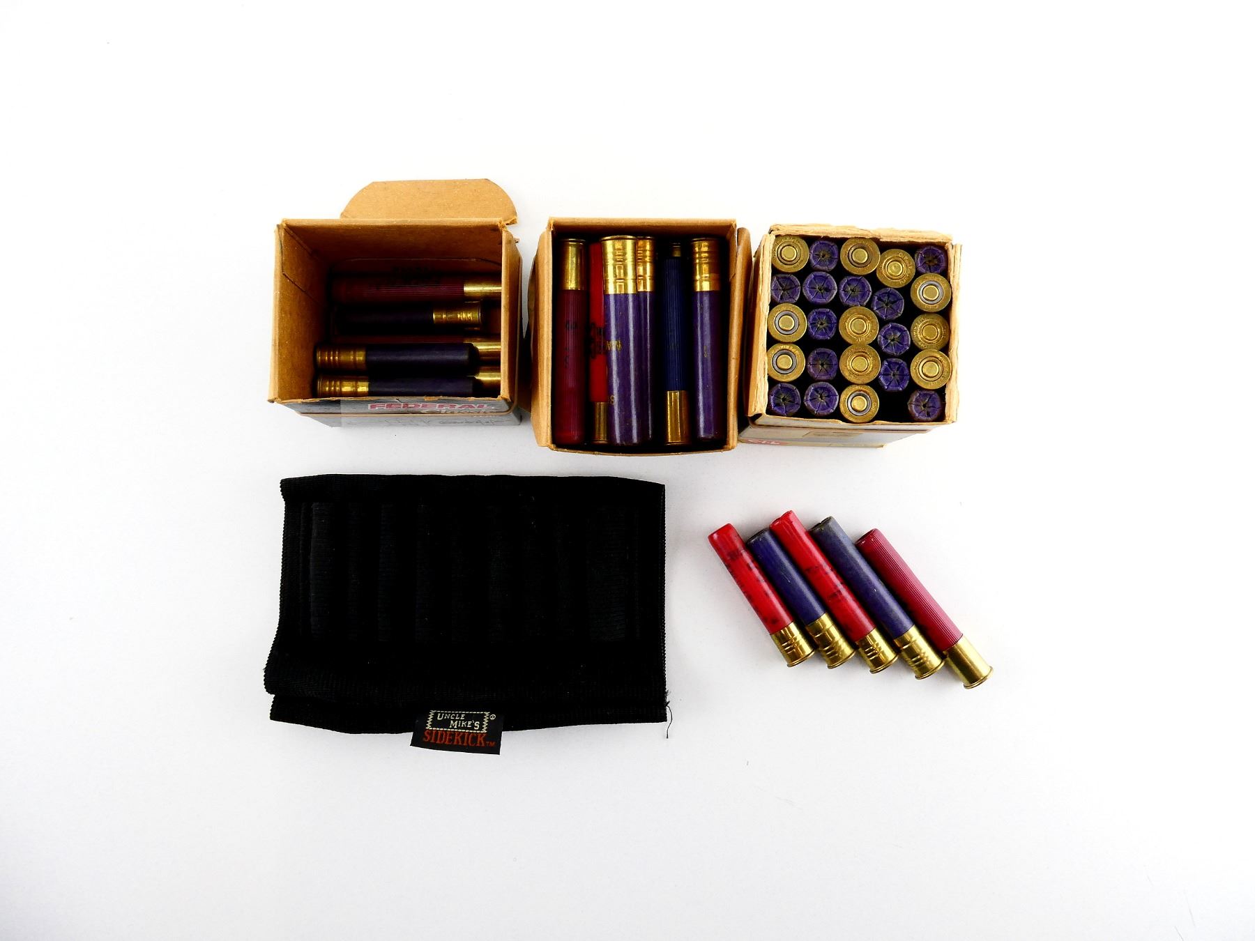 LOT INCLUDES; APPROX. (57) RNDS, VARIOUS MANUFACTURERS, ASSORTED SHOT SIZES INCLUDING; #4, #6 MAGNUM, #7 1/2, ETC., (1) BELT SHOT SHELL HOLDER, SEE PHOTOS.