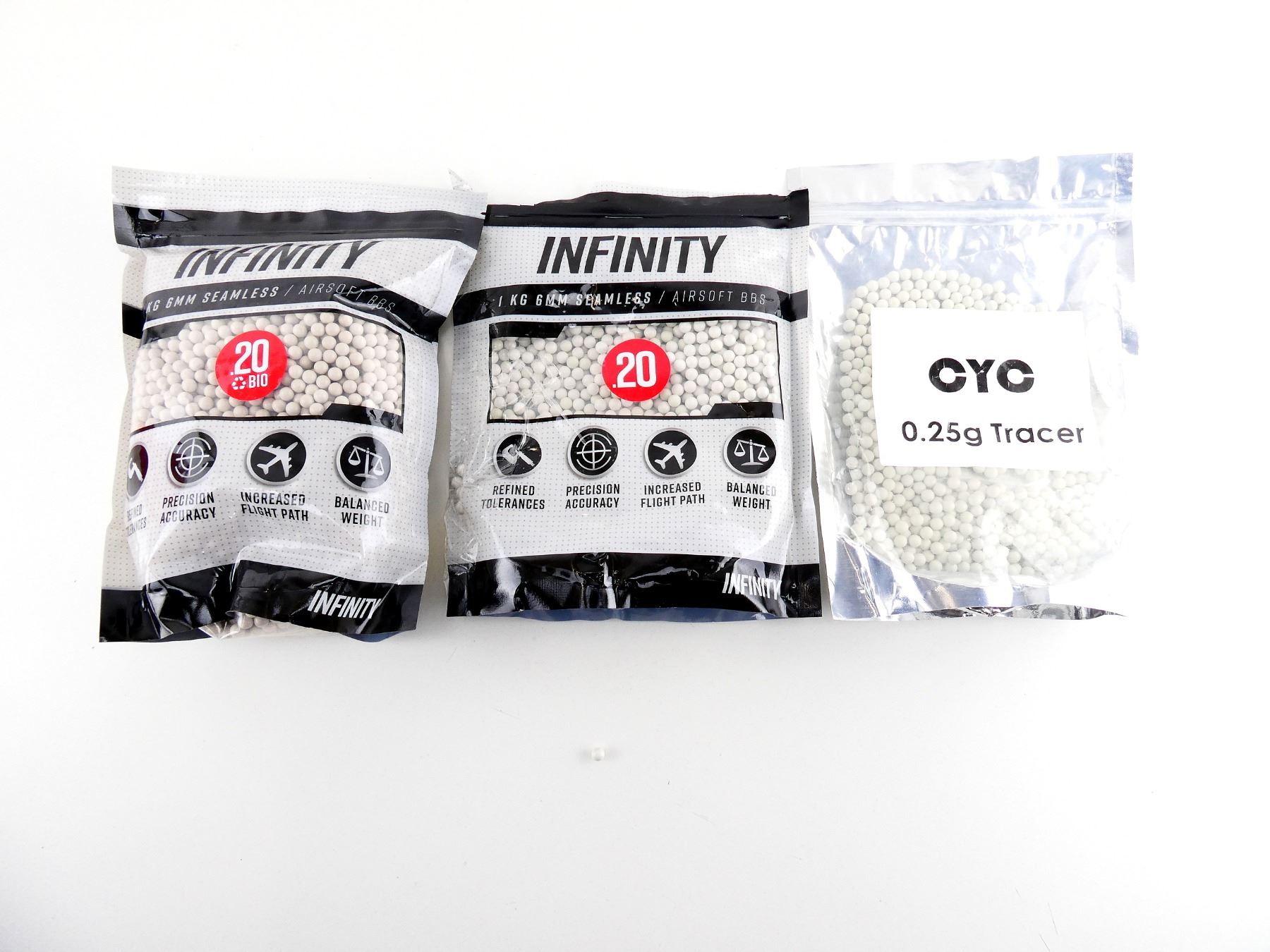 LOT INCLUDES; APPROX. 3 LBS BB'S, VARIOUS MANUFACTURERS INCLUDING INFINITY, CYC, ETC., (1) UNOPENED.
