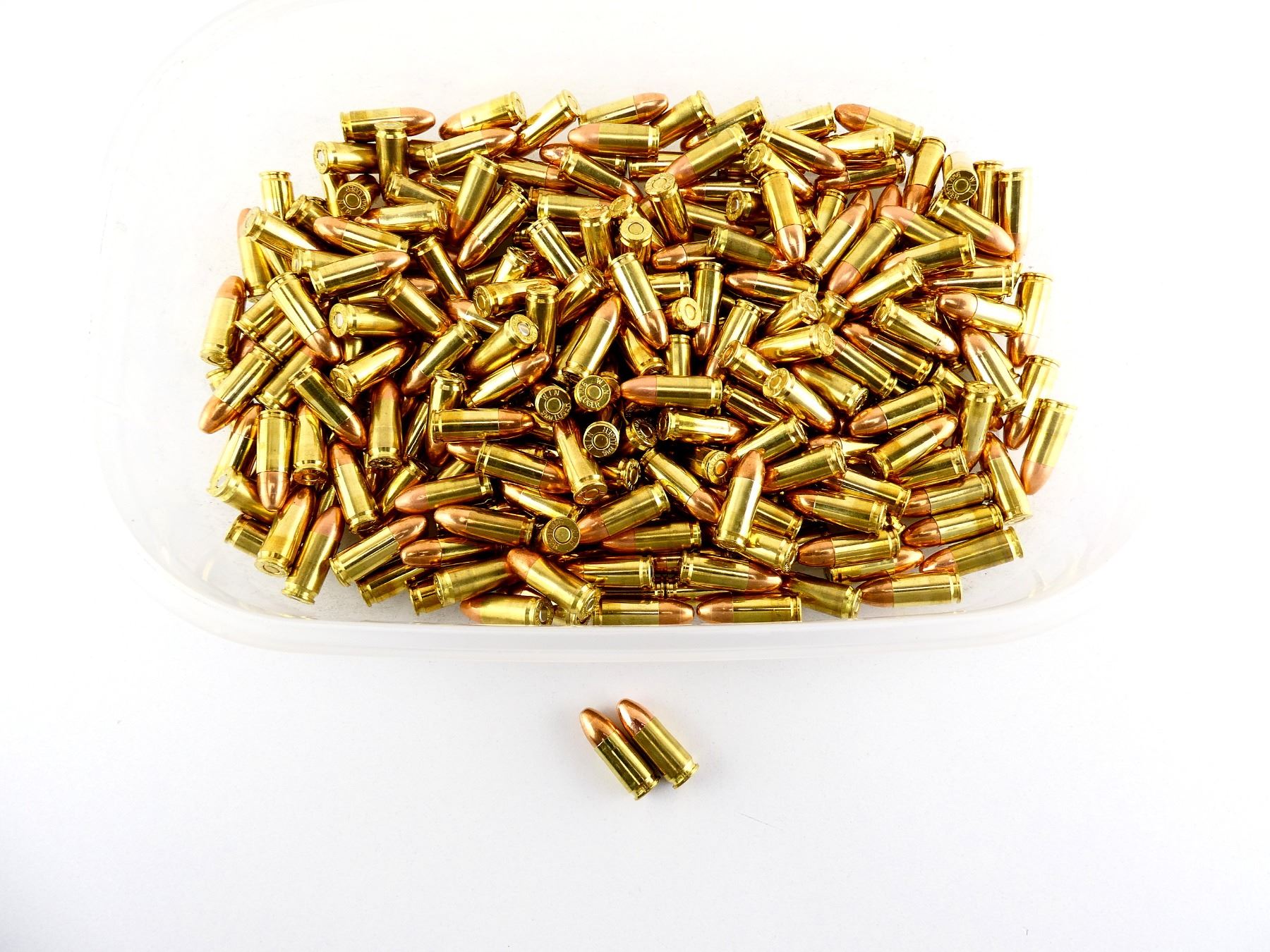 LOT INCLUDES; APPROX (250) RNDS, FMJ, VARIOUS MANUFACTURERS INCLUDING; WINCHESTER, BLAZER, ETC.