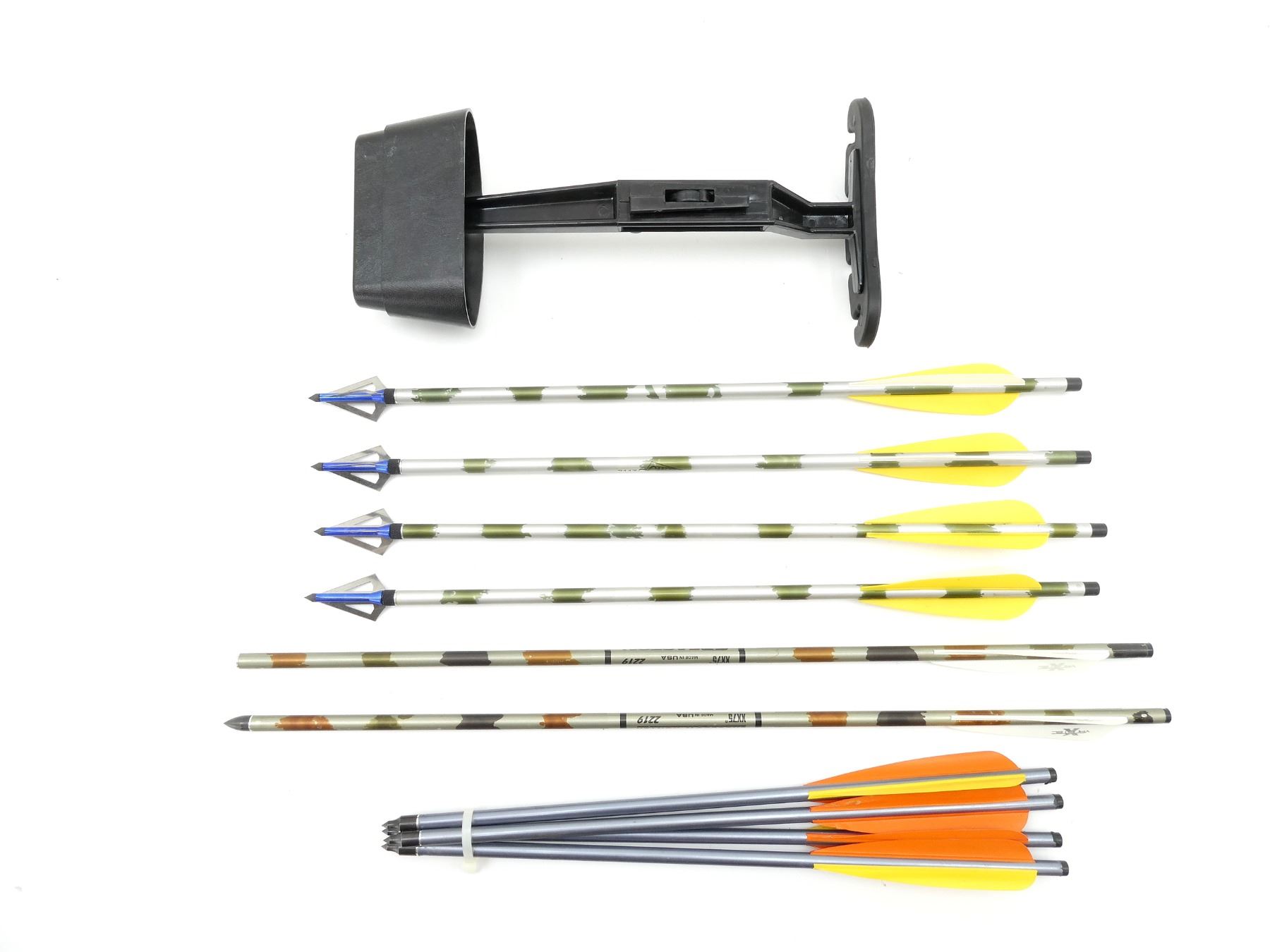 ASSORTED ALUMINUM ARROWS / BROADHEADS / FIELD TIPS AND QUIVER LOT
