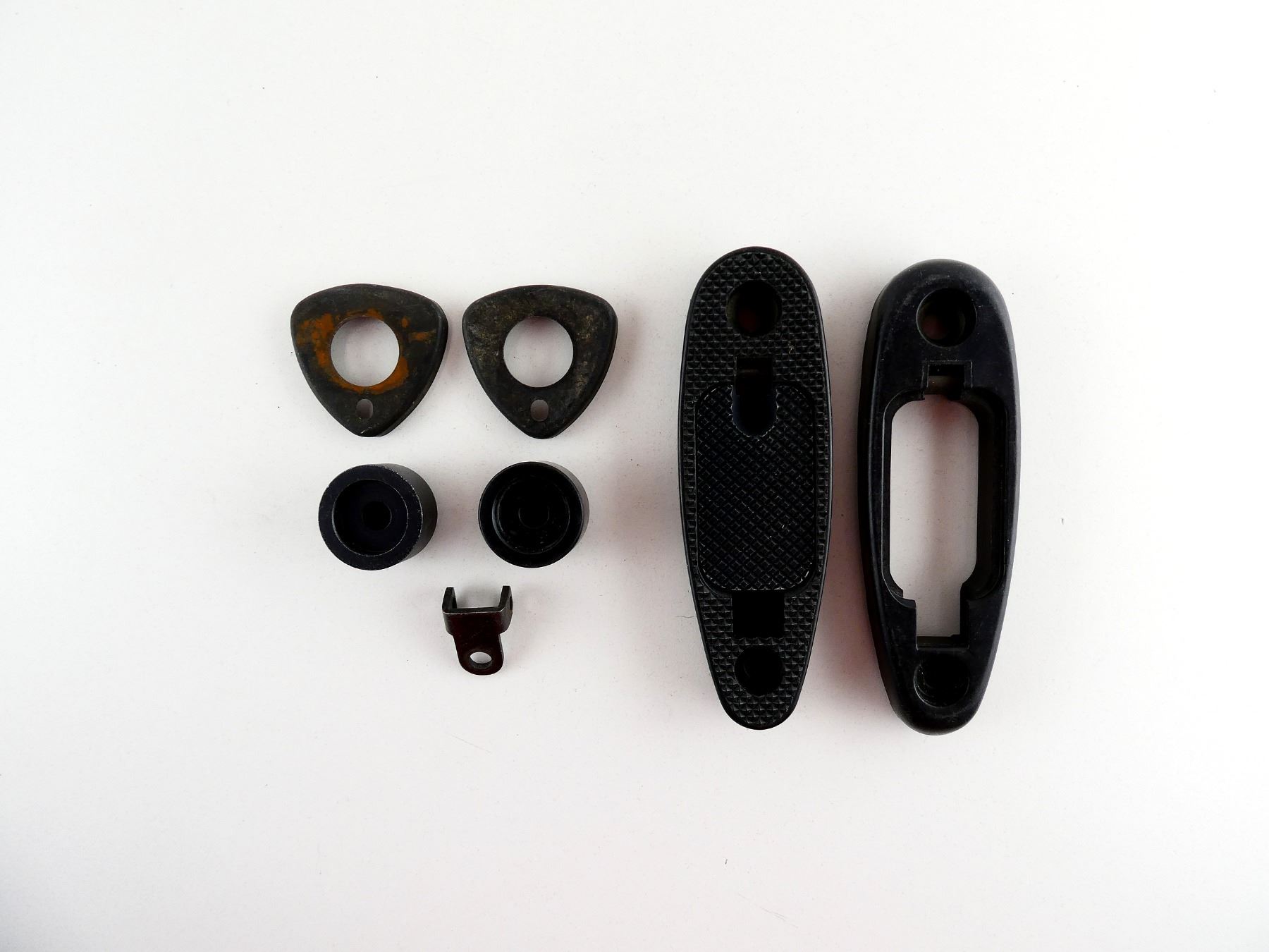 LOT INCLUDES; BUTT PLATES, DOORS, BUSHINGS, FRONT HAND GUARD RINGS, ETC. MAY REQUIRE FITTING. SEE PHOTOS.