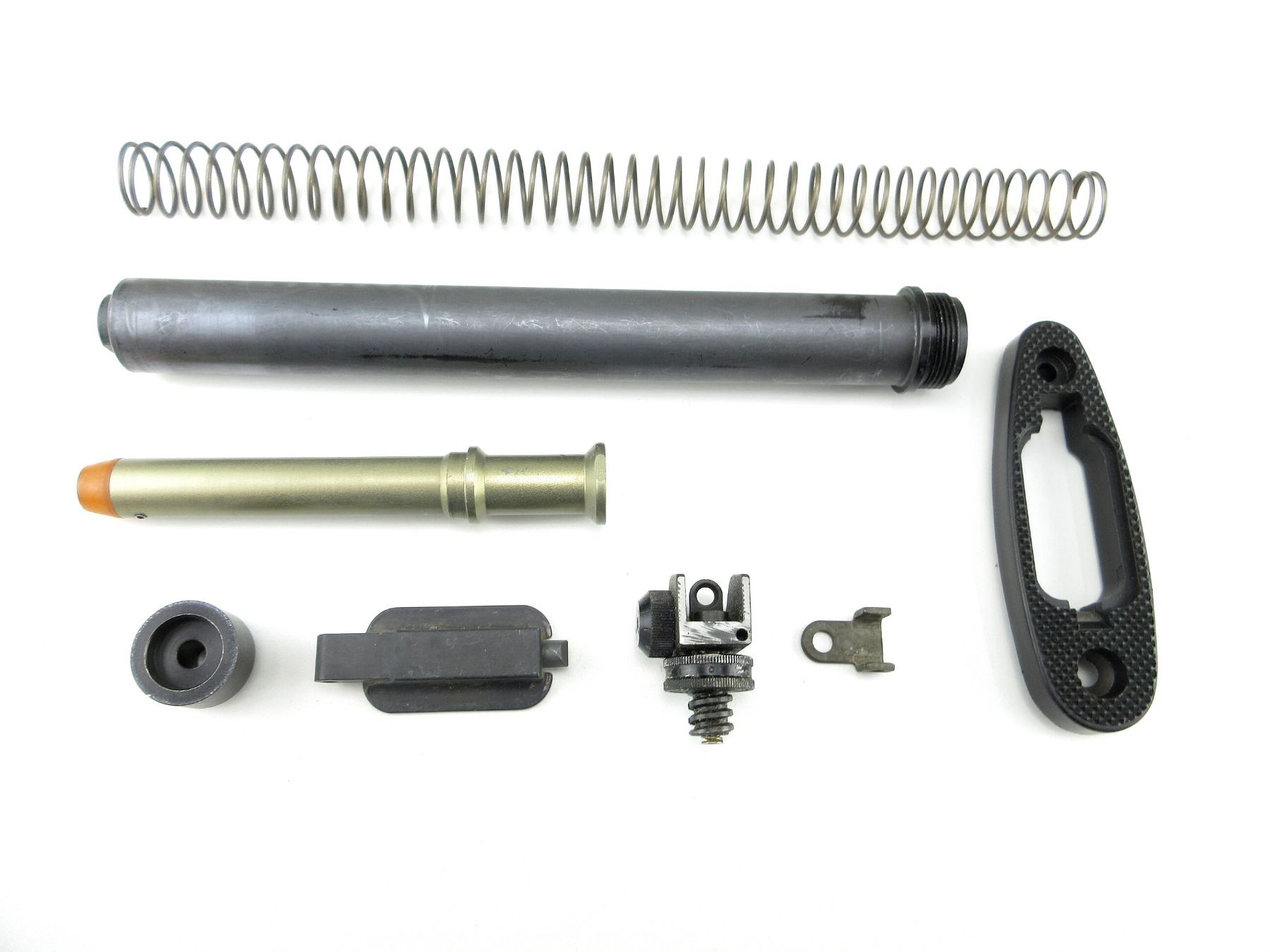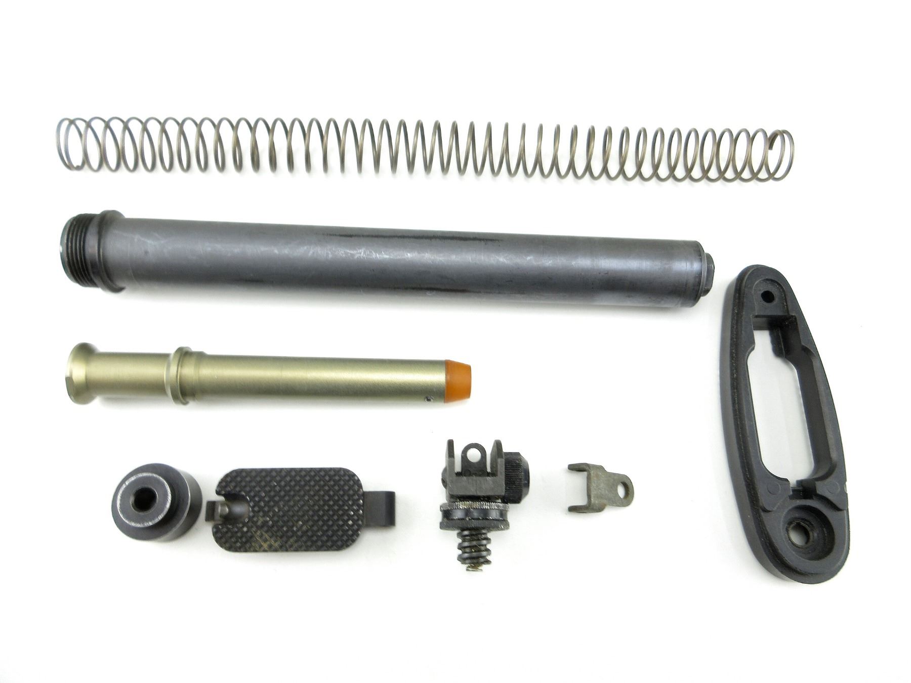 LOT INCLUDES; BUFFER TUBE, BUFFER, RETURN SPRING, BUSHING, REAR SIGHT, BUT PLATE PARTS, ETC. MAY REQUIRE FITTING. SEE PHOTOS.