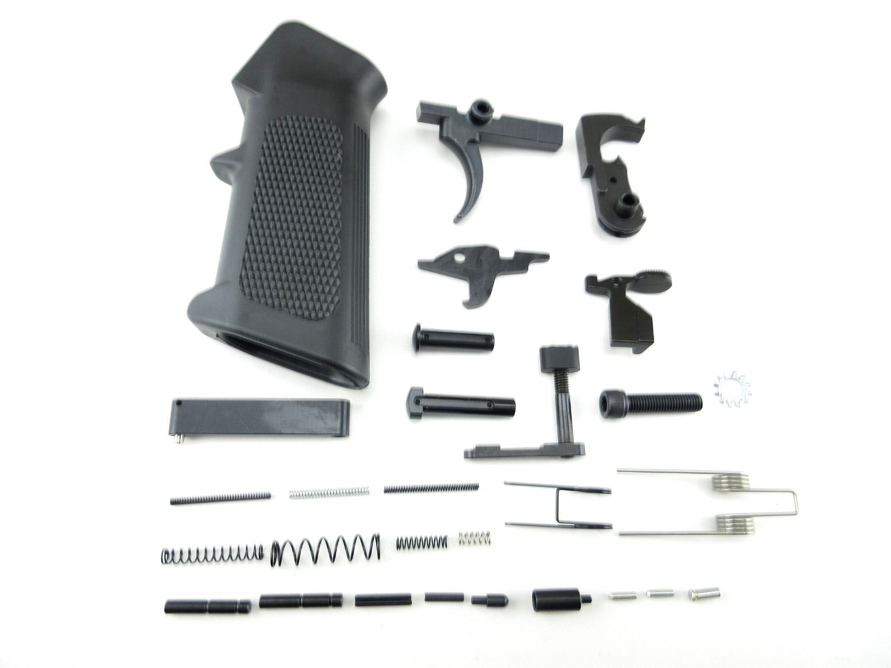 LOT INCLUDES; GRIP WITH SCREW, MAG CATCH, TAKE-DOWN PINS, BOLT RELEASE, HAMMER & TRIGGER, DISCONNECTOR, SPRING & PIN KITS, ETC. MAY REQUIRE FITTING. SEE PHOTOS.