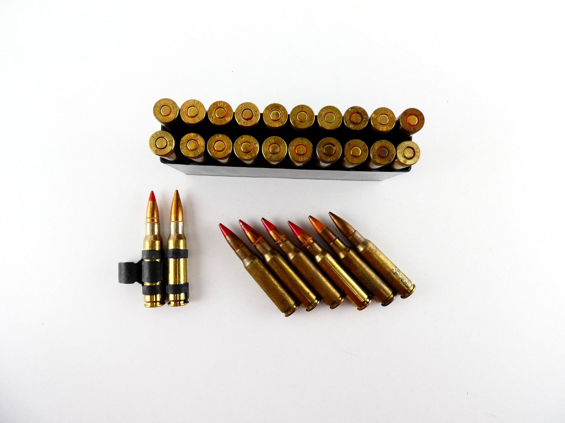 LOT INCLUDES; APPROX. (28) RNDS, TRACERS & FMJ, VARIOUS HEADSTAMPS INCLUDING; DA, IVI, ETC., ((2) LINKS.