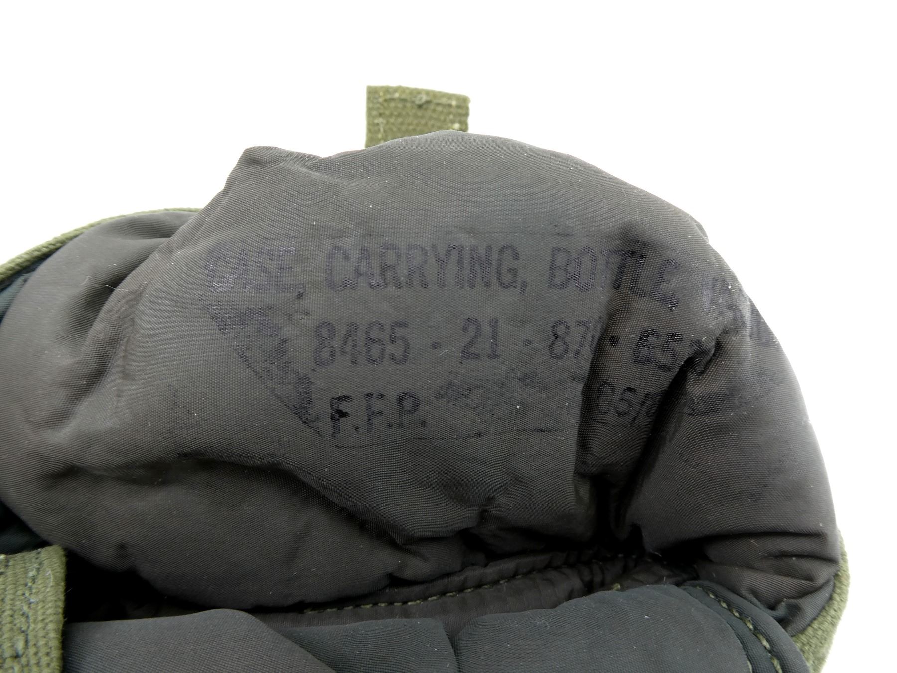 LOT INCLUDES; (3) CANADIAN MILITARY CANTEEN POUCHES, GREEN / CAMO RUBBERIZED NYLON, VARIOUS MARKINGS ON LABELS INSIDE, SHOWS AGE / WEAR, (1) CANADIAN MILITARY THERMOS / BOTTLE CASE, GREEN CANVAS WITH CARRYING STRAP, INSULATED INSIDE, VARIOUS MARKINGS INSIDE & (1) U.S. MILITARY MOLLE II CANTEEN / GENERAL PURPOSE POUCH, GREY DIGITAL STYLE CAMO, VARIOUS MARKINGS ON LABEL ON BACK. SEE PHOTOS.