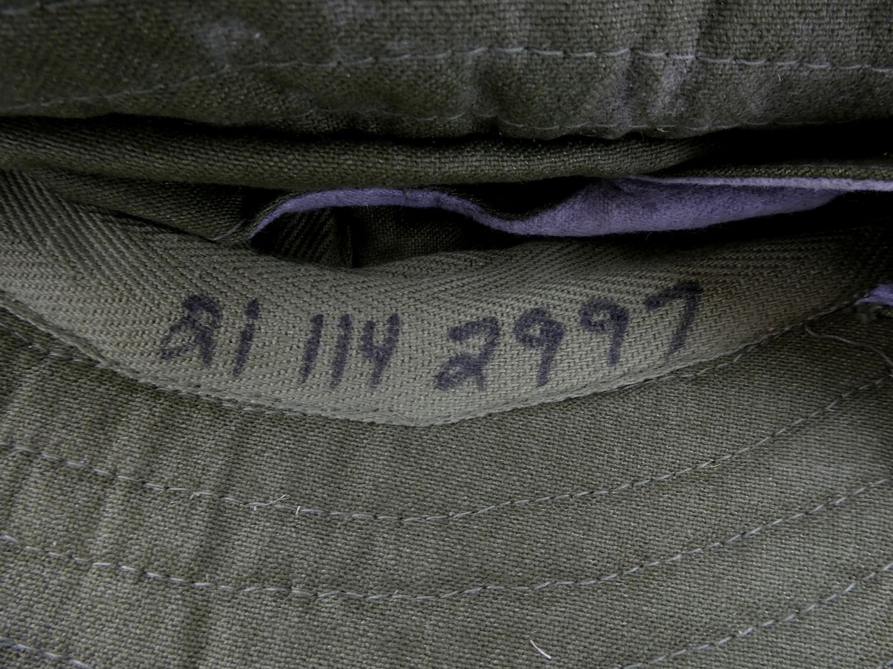 LOT INCLUDES; (1) CANADIAN MILITARY GREEN NYLON EXTREME COLD WEATHER COMBAT PARKA, SIZE 5 REGULAR-MEDIUM, VARIOUS LABELS / MARKINGS, SNAP CLOSURE, SHOWS AGE / WEAR / TEAR, (1) U.S. MILITARY WOODLAND CAMO HOT WEATHER COMBAT SHIRT, SIZE MEDIUM-LONG, VARIOUS LABELS / MARKINGS, BUTTON FRONT, SHOWS WEAR, (4) CANADIAN MILITARY PAIRS OF RUBBER PROTECTIVE GLOVES, ALL SIZE SMALL, VARIOUS INK STAMP MARKINGS, SHOWS WEAR, (1) CANADIAN MILITARY BLUE SHORT-SLEEVED SHIRT, BUTTON-FRONT, VARIOUS LABELS / MARKINGS, SHOWS WEAR, SHOULDER WIDTH APPROX. 17.5", (2) U.S. MILITARY T-SHIRTS, SIZE MEDIUM (38-40), VARIOUS LABELS / MARKINGS ON ONE, SHOWS WEAR, ETC. SEE PHOTOS.