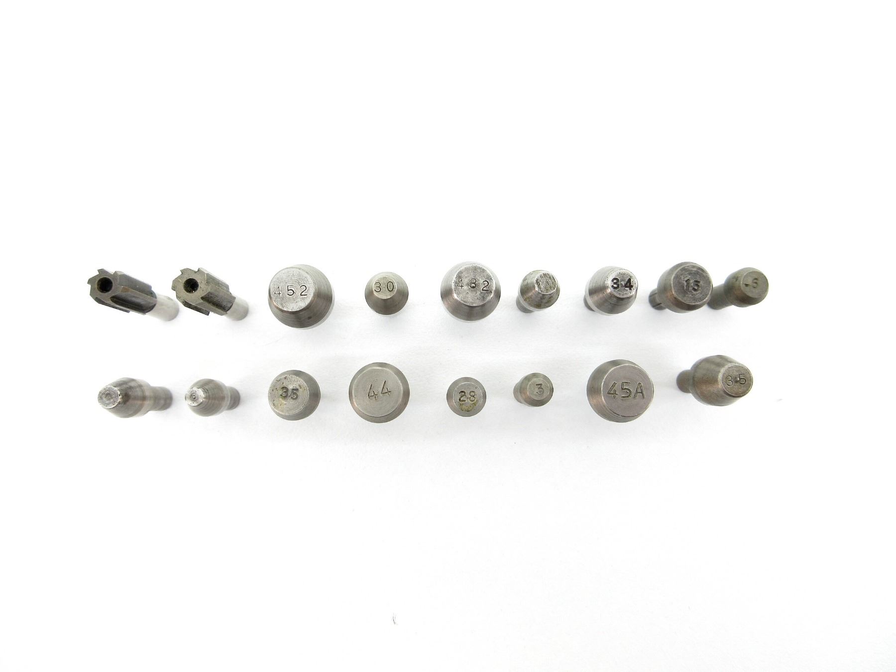 LOT INCLUDES; APPROX. (15) CASE TRIMMER PILOTS, #3, #6, #15, #26, #27, TWO #28'S, #30, #34, TWO #35'S, 9MM, #44, #45A, #432, #452 & (2) REAMERS #243 & #263. SEE PHOTOS.