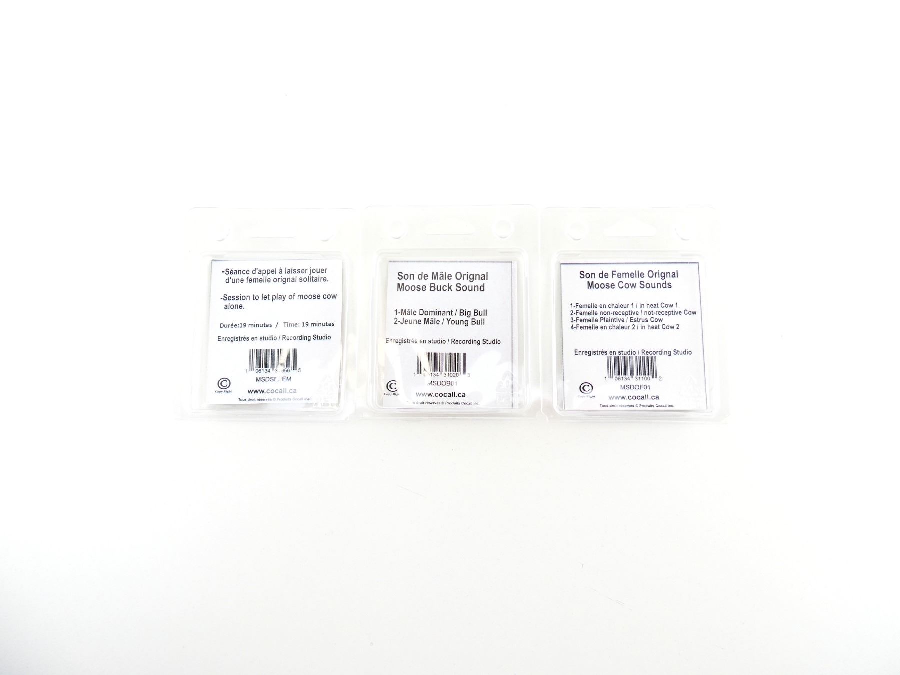 LOT INCLUDES; (1) MICRO SD MOOSE COW SOUNDS, SOUNDS INCLUDE IN HEAT COW 1 / NOT-RECEPTIVE COW / ESTRUS COW / IN HEAT COW 2, APPEARS NEW OLD STOCK IN ORIGINAL PACKAGING, (1) MICRO SD COW ALONE SOUNDS, APPEARS NEW OLD STOCK IN ORIGINAL PACKAGING & (1) MICRO DS MOOSE BUCK SOUNDS, SOUNDS INCLUDE BIG BULL / YOUNG BULL, APPEARS NEW OLD STOCK IN ORIGINAL PACKAGING. SEE PHOTOS.