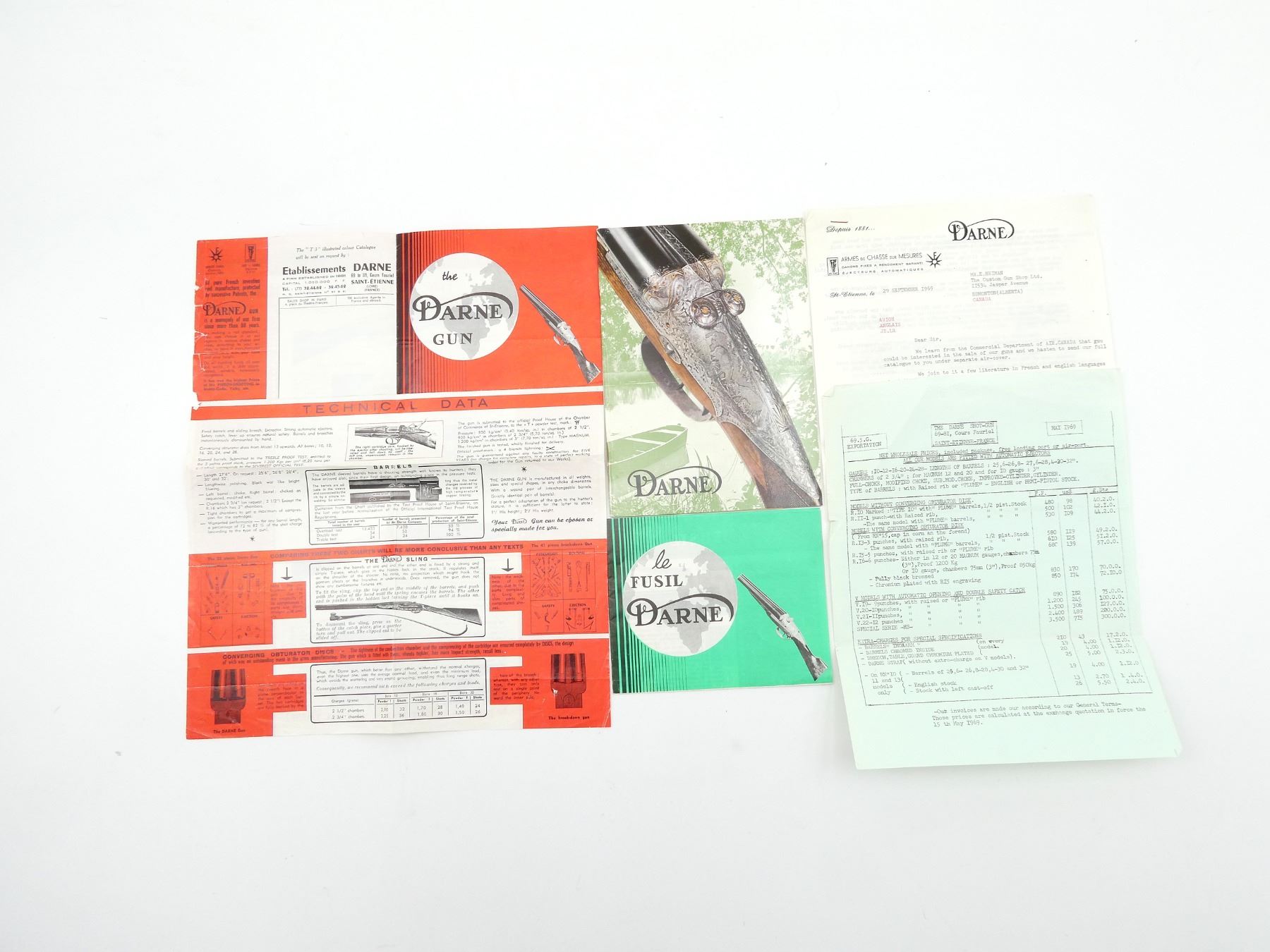 LOT INCLUDES; (1) "LE FUSIL DARNE" BROCHURE, IN FRENCH, SOFT COVER, (1) "DARNE" BROCHURE, IN FRENCH, SOFT COVER, (1) "THE DARNE GUN" BROCHURE, IN ENGLISH, SOFT COVER, ETC. SEE PHOTOS.