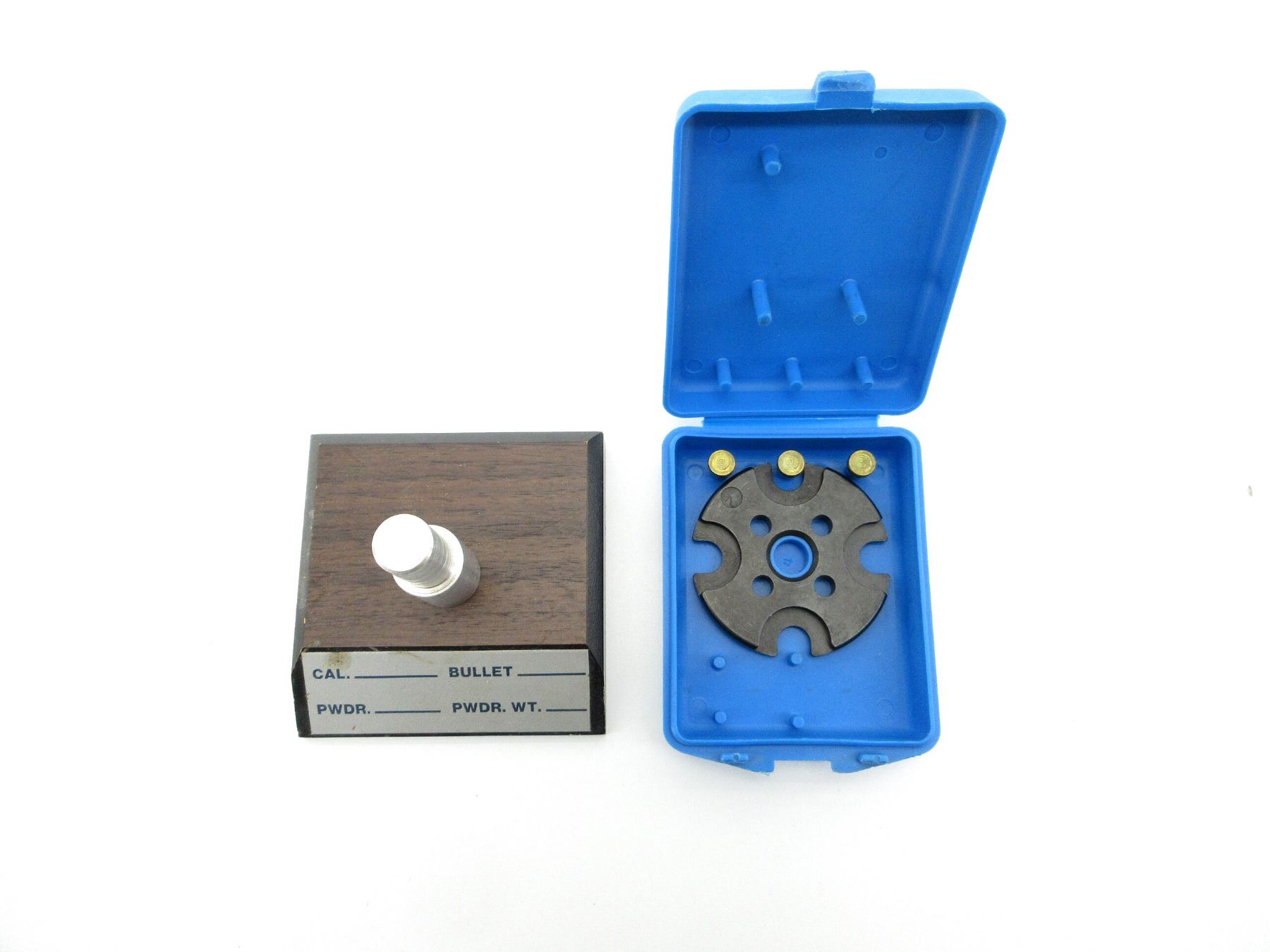 LOT INCLUDES; (1) TOOL HEAD STAND & (1) .38/357 MAG CONVERSION KIT WITH THREE BRASS BUTTONS / SHELL PLATE & MISSING POWDER FUNNEL. SEE PHOTOS.