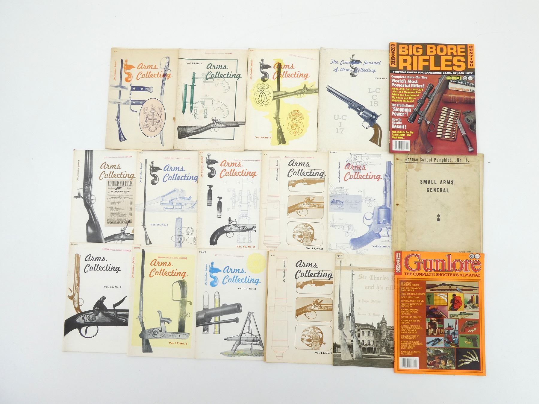 LOT INCLUDES; (13) "THE CANADIAN JOURNAL OF ARMS COLLECTING", ISSUES BETWEEN VOL. 6 NO. 2 & VOL. 17 NO. 3, BY VARIOUS AUTHORS, SOFT COVERS, SERIES NOT COMPLETE / SOME ISSUES MISSING / MAY CONTAIN DUPLICATES, (1) "GUNLORE - THE COMPLETE SHOOTER'S ALMANAC", PUBLISHED BY PETERSEN PUBLISHING COMPANY, SOFT COVER, COPYRIGHT 1981 & (1) "BIG BORE RIFLES", PUBLISHED BY PETERSEN PUBLISHING COMPANY, SOFT COVER, ETC. SEE PHOTOS.