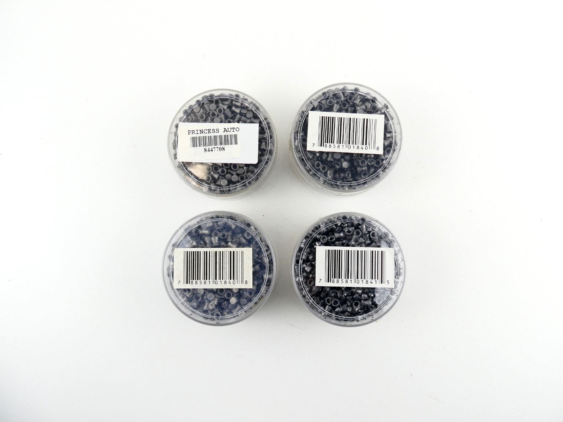 LOT INCLUDES; APPROX. (2000) PELLETS, 8.6 GRNS (STATED ON TINS NOT CONFIRMED), FLAT & 9.4 GRNS (STATED ON TIN NOT CONFIRMED), POINTED, UNOPENED.