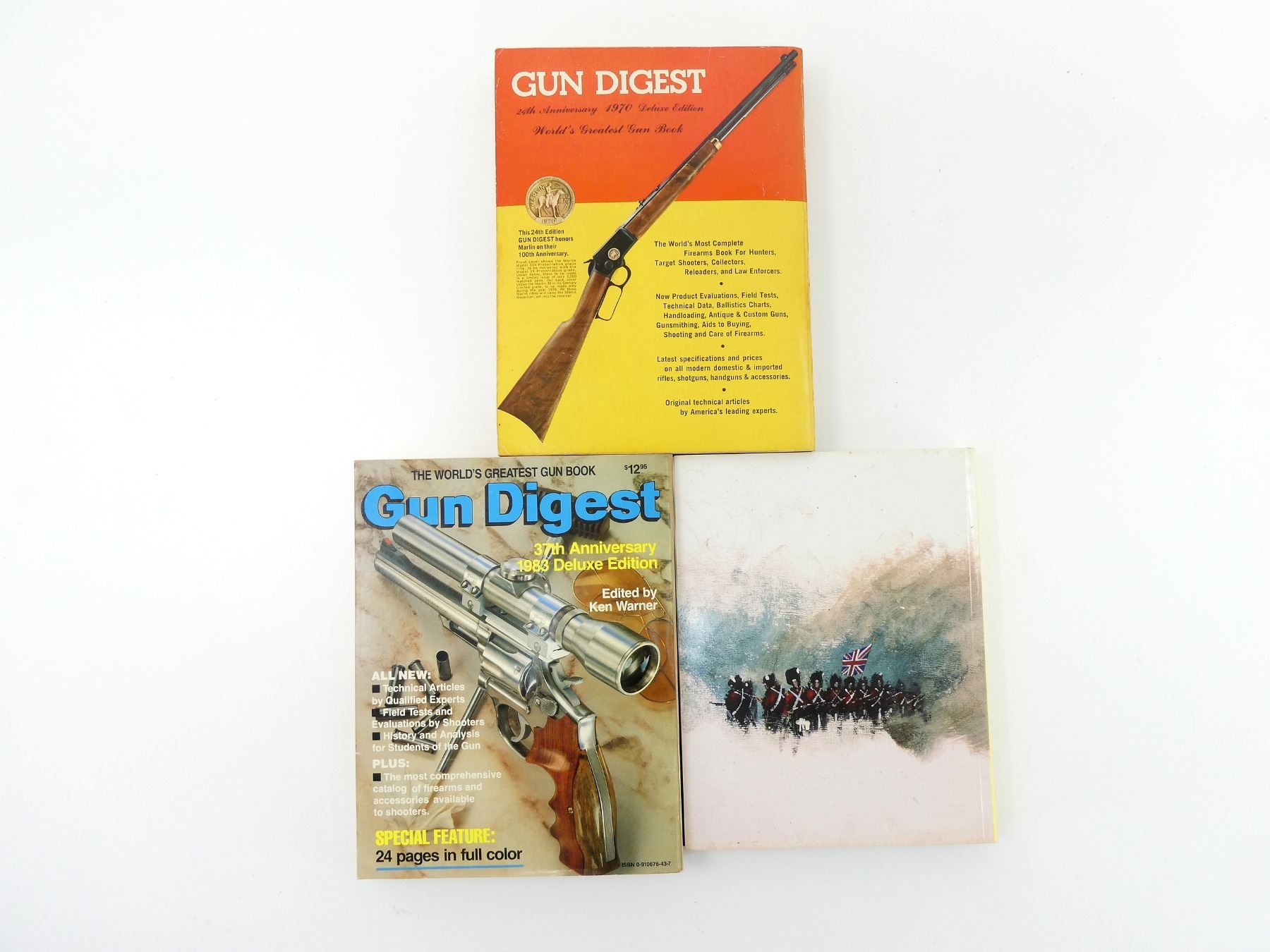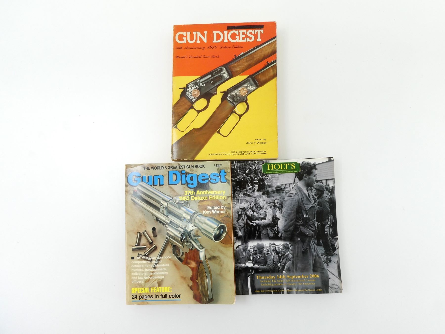 LOT INCLUDES; (1) "GUN DIGEST" 24TH ANNIVERSARY, 1970 DELUXE EDITION, EDITED BY JOHN T. AMBER, SOFT COVER, ISBN: 695-80062-0, (1) "GUN DIGEST" 37TH ANNIVERSARY, 1983 DELUXE EDITION, EDITED BY KEN WARNER, SOFT COVER, ISBN: 0-910676-43-7 & (1) "HOLT'S" CATALOGUE, SEPTEMBER 14TH 2006 EDITION, SOFT COVER. SEE PHOTOS.