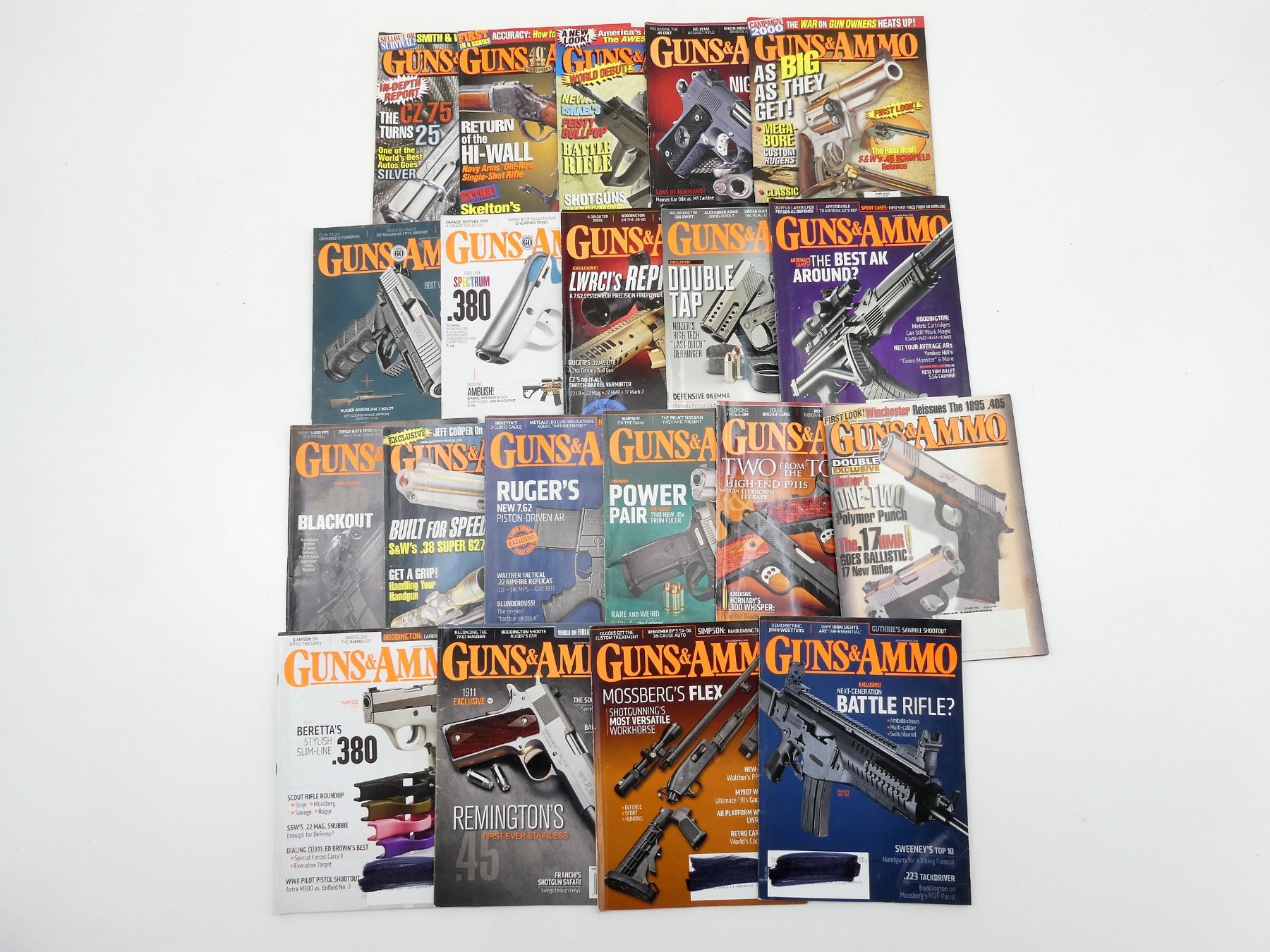 LOT INCLUDES; APPROX. (20) "GUNS & AMMO" MAGAZINES, SOFT COVERS, ASSORTED DATES, SERIES NOT COMPLETE / SOME ISSUES MISSING / MAY CONTAIN DUPLICATES. SEE PHOTOS.