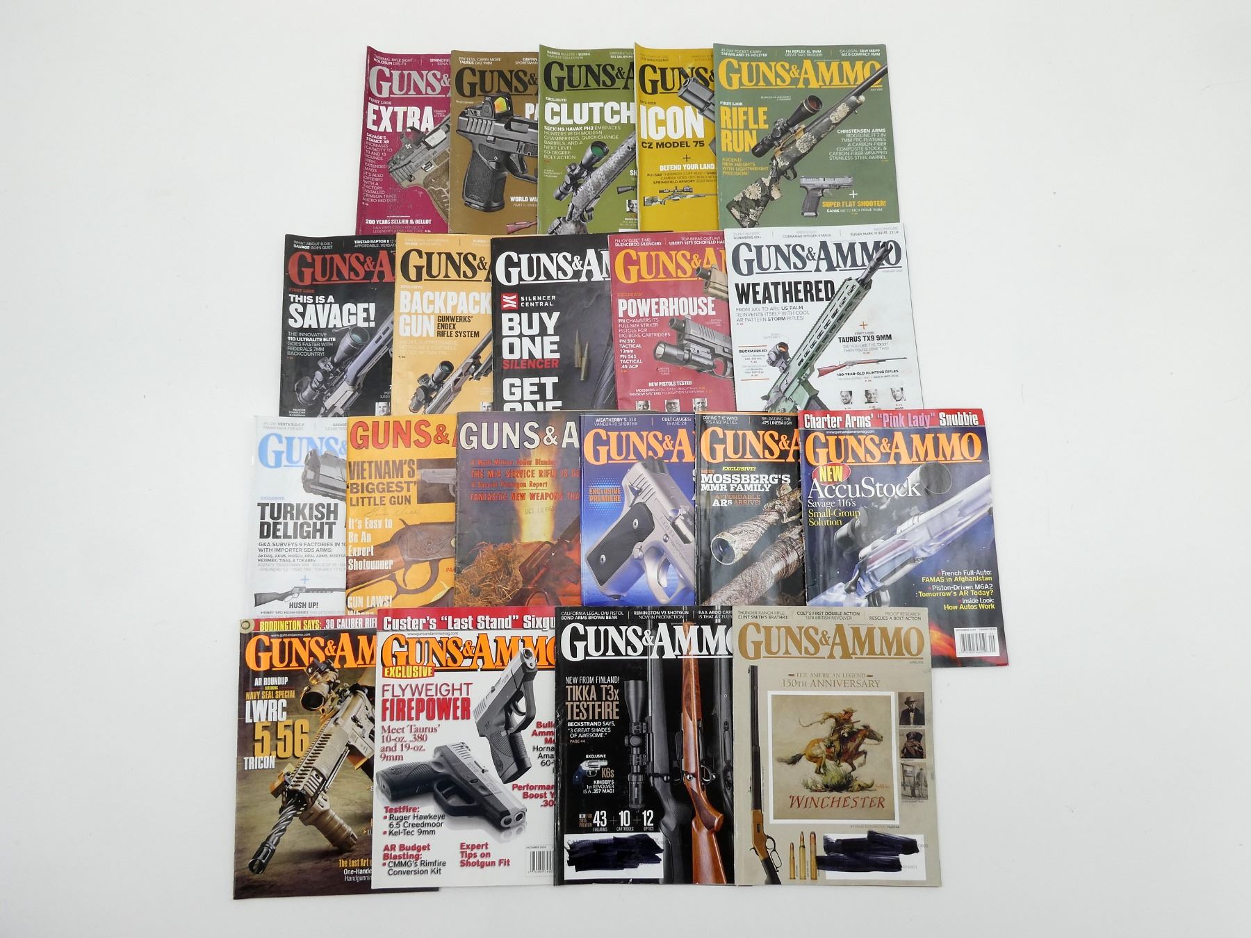 LOT INCLUDES; APPROX. (20) "GUNS & AMMO" MAGAZINES, SOFT COVERS, ASSORTED DATES, SERIES NOT COMPLETE / SOME ISSUES MISSING / MAY CONTAIN DUPLICATES. SEE PHOTOS.