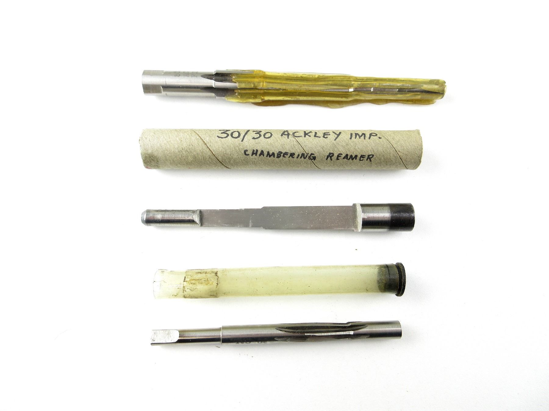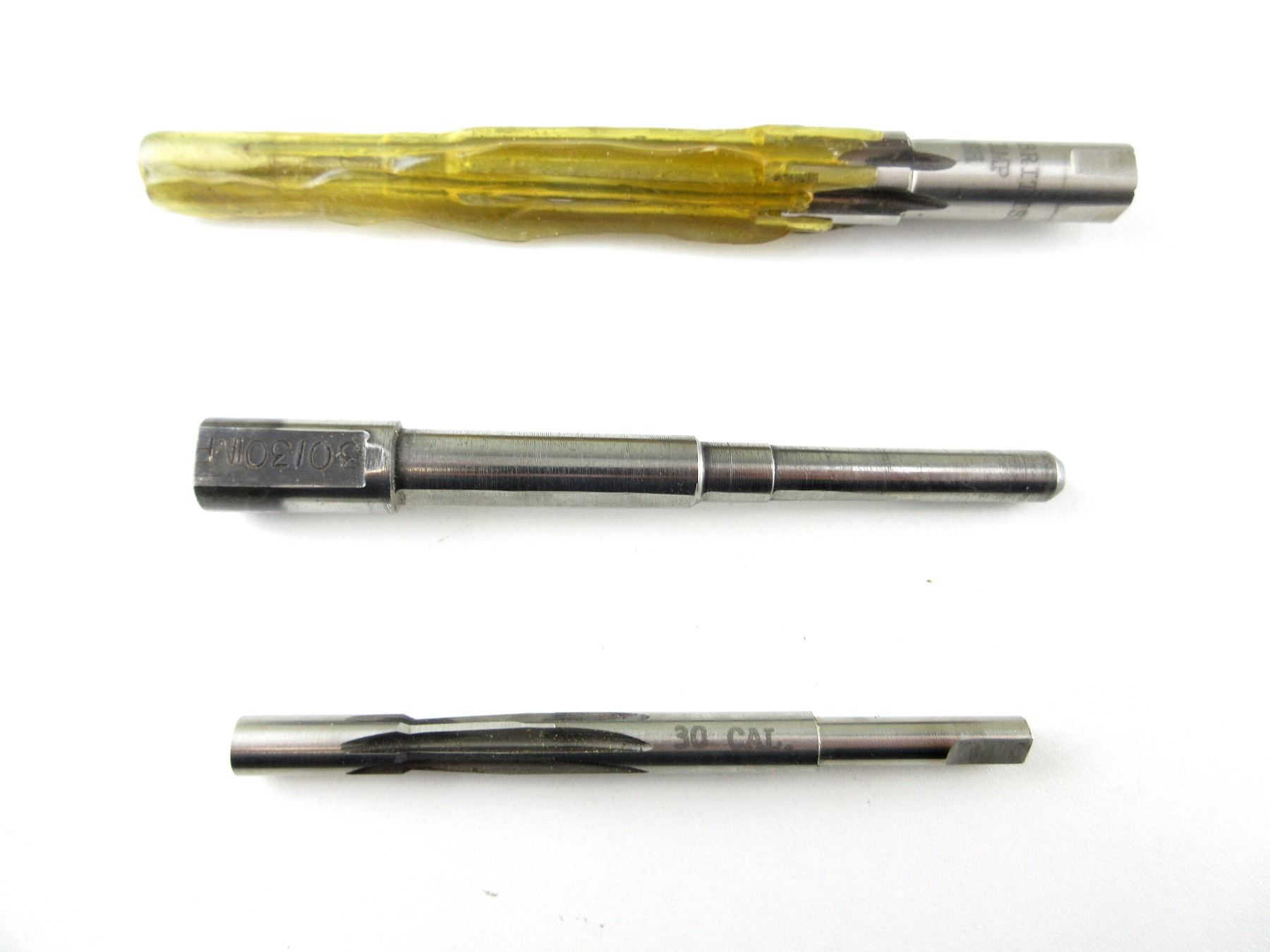 LOT INCLUDES; (1) UNKNOWN .303 BR ACK IMP FINISHING REAMER, (1) CUSTOM .30-03 ACK IMP CHAMBER REAMER & (1) UNKNOWN .30 CAL. THROATER. SEE PHOTOS.