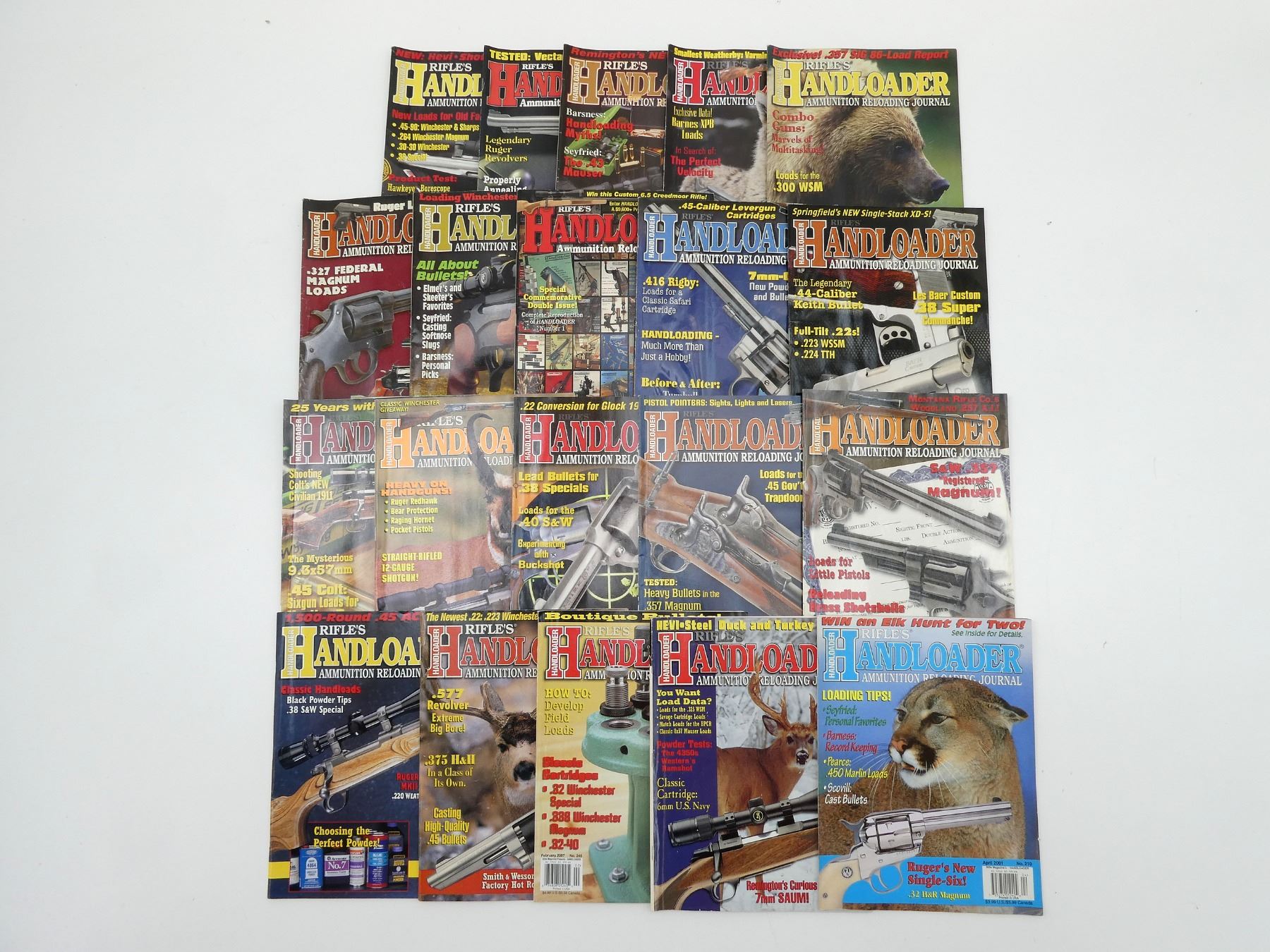 LOT INCLUDES; APPROX. (20) "HANDLOADER: AMMUNITION RELOADING JOURNAL" MAGAZINES, SOFT COVERS, ASSORTED DATES, SERIES NOT COMPLETE / SOME ISSUES MISSING / MAY CONTAIN DUPLICATES. SEE PHOTOS.
